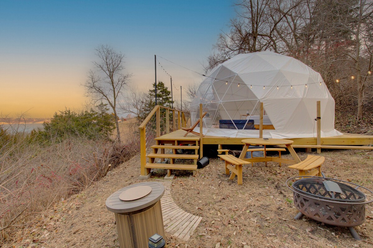 Heated Dome Glampsite, Qbed, Camping, Firepit