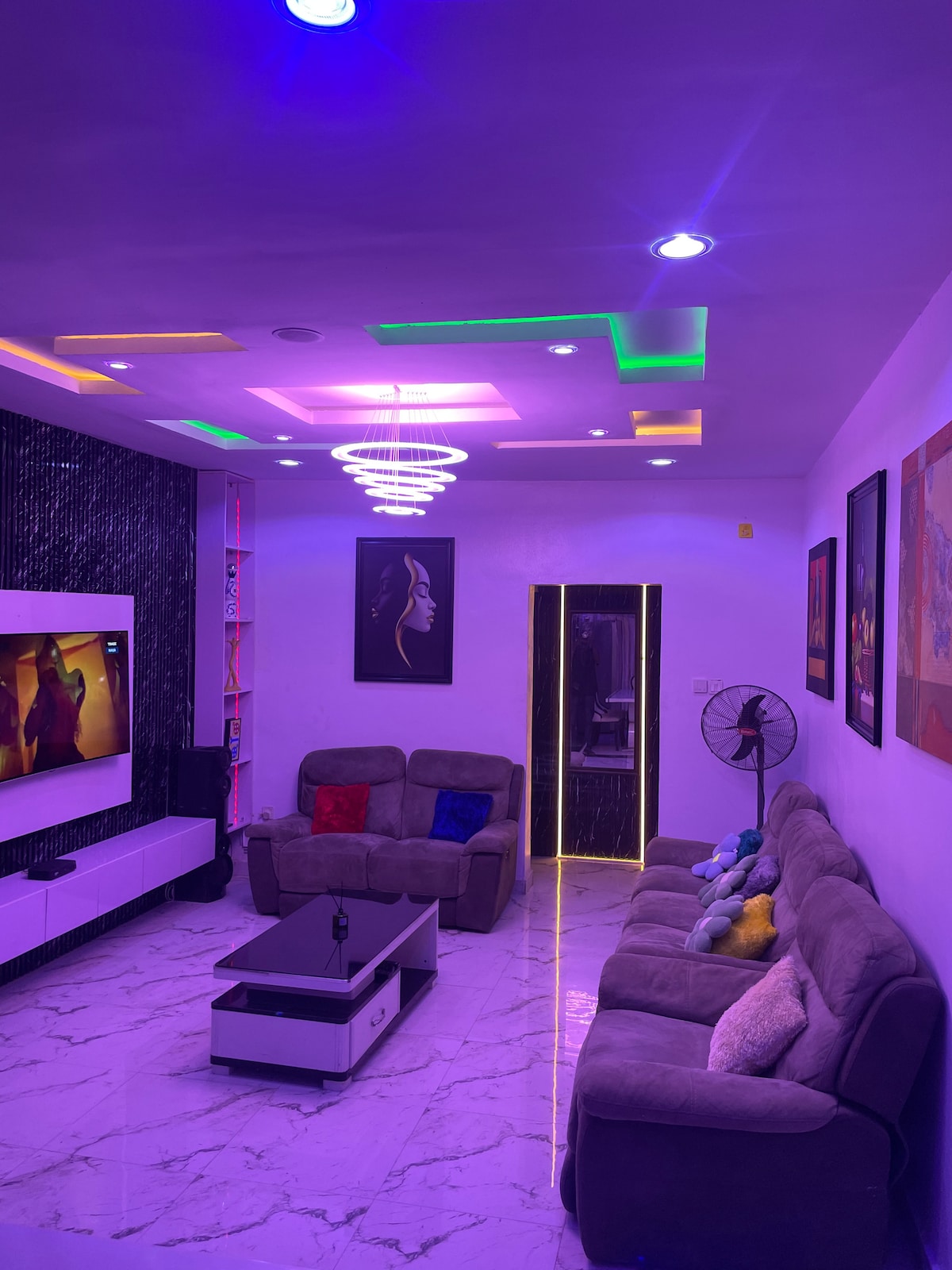 D'EXQUISITE APARTMENTS, newly built property with state of the art luxury amenities in a serene, peaceful, family friendly and unique environment close to attractions , malls, lounges/bar e.t.c . 24/7 Electricity, Free internet/WIFI, free parking and spacious compound that can be utilised for party/ gathering. The whole group will be comfortable in this spacious and unique space with 24/7 security personnel and supporting staff onsite for free cleaning services.