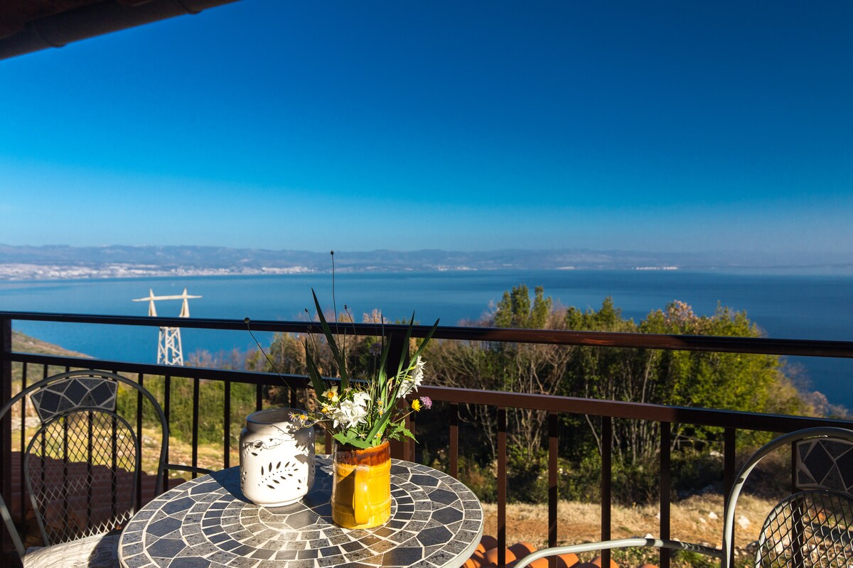 Căn hộ studio cho hai người này nằm phía trên Mošćenicka Draga. Điều tuyệt vời nhất về studio là tầm nhìn tuyệt vời trên vịnh Kvarner mà bạn sẽ không bao giờ quên. Bạn có 4 km đường từ biển Adriatic và từ một trong những bãi biển đẹp nhất Croatia... Sipar ở Mošćenička Draga và cách Mošćenice 1 km. Có một lối đi qua gỗ bằng cách đi bộ và bạn sẽ ra bãi biển trong 15 phút . Xe hơi được khuyên dùng. Ngoại trừ quang cảnh, bạn có thể tận hưởng khu vực yên bình mà không có nhiều poeple và xem Croatia thực sự.