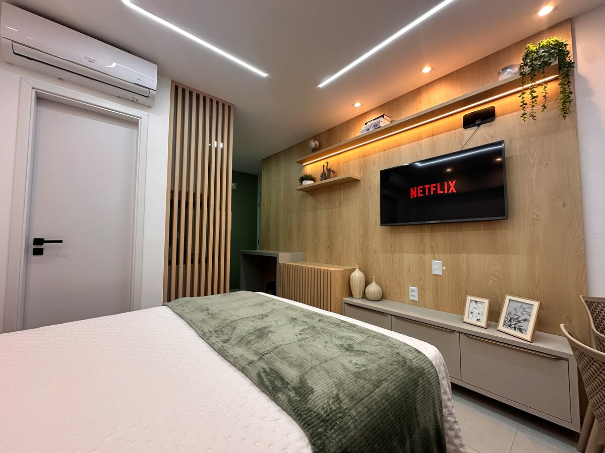 Studio được cải tạo hoàn toàn vào tháng 3 năm 2025 tại vị trí tốt nhất của Ondina. Nằm trong khách sạn Pier Sul Apart, với vị trí tuyệt vời phía trước biển, dịch vụ giúp việc hàng ngày và với một số cơ sở chỉ cách một hòn đá. Nó chứa tối đa 5 người một cách thoải mái, vì ngoài giường Queen, nó có 1 giường sofa đơn và 1 giường đôi với hệ thống Magic Box độc quyền mà sau khi mở là kích thước giường đôi tiêu chuẩn và đơn, siêu thoải mái! Bếp đầy đủ và trousseau chất lượng đầu tiên.