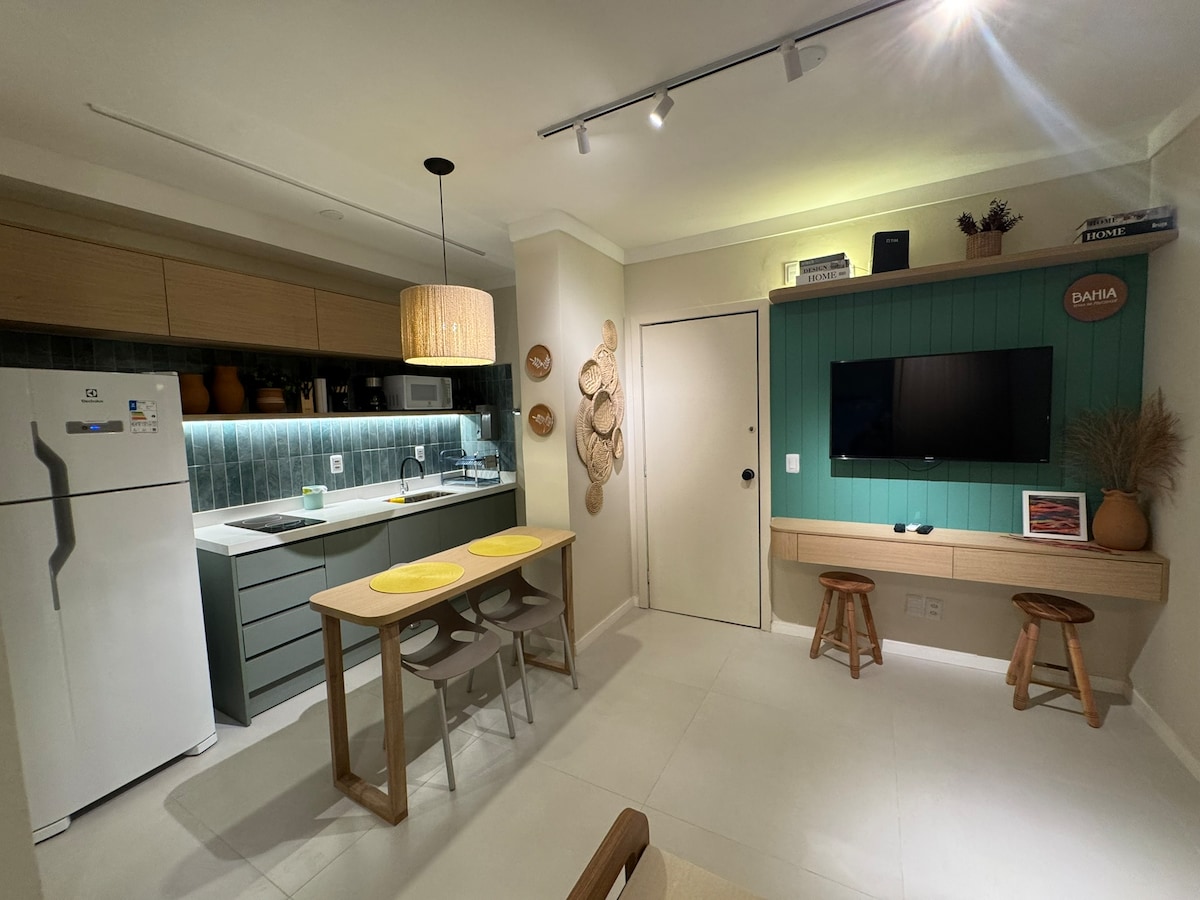 Chào mừng bạn đến với Bahia Boutique, nơi sự sang trọng gặp gỡ sự thanh bình của những con sóng và sự quyến rũ của khu phố lịch sử Barra. Căn hộ này được thiết kế tỉ mỉ, lấy cảm hứng từ thiết kế Boutique Hotel, với đồ nội thất thoải mái và bảng màu phản ánh sự thanh bình của đại dương mang đến một môi trường thân thiện và tinh tế. Cảm nhận gió biển và ngâm mình trong ánh nắng mặt trời Bahian, thức dậy mỗi sáng với tầm nhìn ngoạn mục ra biển. Cảm thấy như ở nhà và "Mỉm cười, bạn đang ở Bahia!"