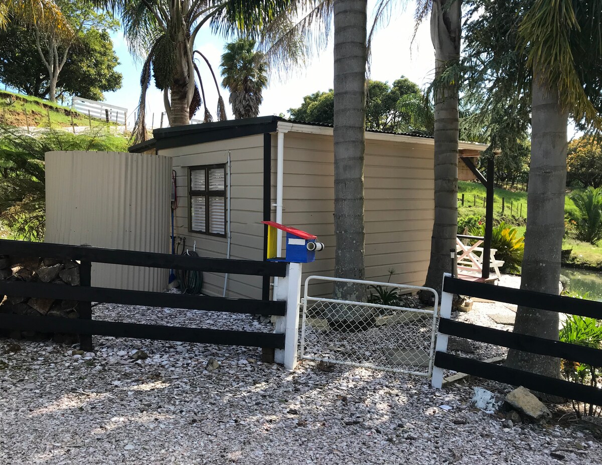 Tiny house complete with small kitchenette and bathroom, outside shower and bath. The cabin has either superking bed or 2 singles. Peaceful rural setting 4 km from the iconic Whangamata beach. Sealed road for cyclists and 2km from beautiful bush walks and waterfall. We are a small farm with cattle, sheep and chickens with an organic garden and orchard. This accomodation is not suitable for children. Self catered but continental breakfast can be supplied on request at $12.50 per person (cash).
