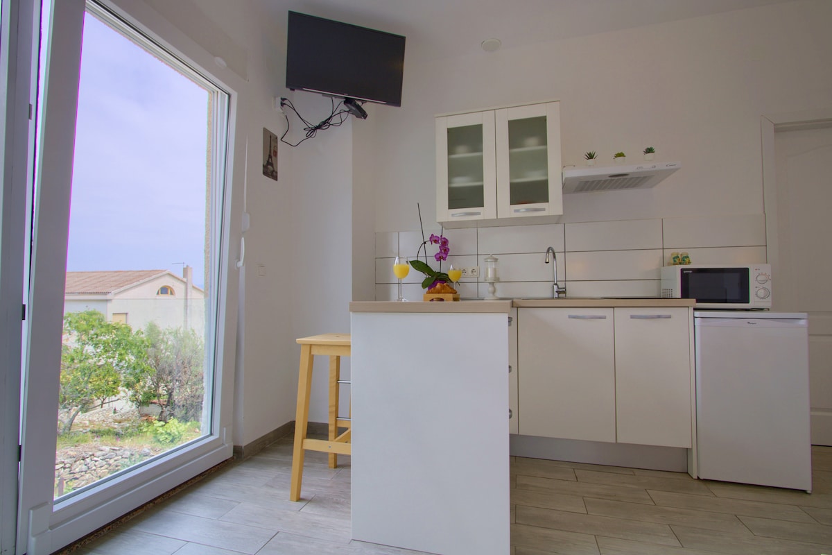 Nơi tuyệt vời, lãng mạn cho các cặp đôi, căn hộ nghỉ dưỡng hoàn toàn mới nằm trên đường đảo chính, cách bến phà đến trung tâm Kali nửa quãng đường. Tất cả các địa điểm trên hai hòn đảo thư giãn này, với bãi biển đẹp và tầm nhìn ngoạn mục nằm trong phạm vi 15 phút lái xe. Căn hộ có tầm nhìn tuyệt vời trên kênh Zadar và chỉ cách bãi biển gần nhất vài phút. Nó được trang bị internet wifi, TV, bếp, tủ lạnh, tủ đông, lò vi sóng và nồi cơm nước.