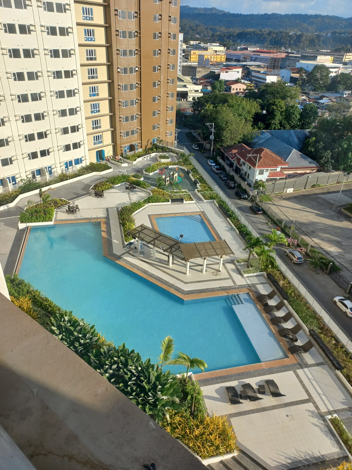 One Oasis condo, super king-size bed with memory foam mattress, extra double mattress, full kitchen, unlimited 40 mbps fiber Wi-Fi, 42” HDTV, +cable TV (56 ch), walk-around balcony with great view, leather sofa, aircon, hot water shower, in private gated resort complex near downtown CDO, 24/7 security, peaceful, relaxing, walking distance to malls, restaurants, supermarkets. Two pools Air-conditioned gym Clubhouse Playground Indoor basketball