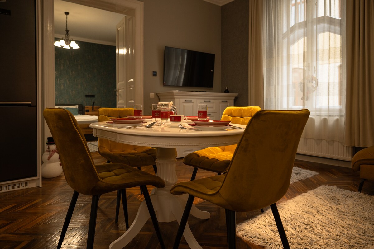Căn hộ nằm trên con phố cá nhân đẹp nhất ở Oradea trong một tòa nhà được xây dựng vào năm 1910, gắn liền với bảo tàng Art Nouveau duy nhất ở Romania, Darvas Roche House. Khu vực này có đầy đủ các nhà hàng, sân thượng, quán cà phê, công viên và cửa hàng các loại. Tất cả các điểm tham quan của Oradea đều cách đó 2 - 5 phút đi bộ và tại Aquapark Nimphea, bạn có thể đến bằng cách đi bộ trong 10 phút trên bờ Crisului. Căn hộ gồm phòng ngủ, phòng tắm và bếp mới được cải tạo