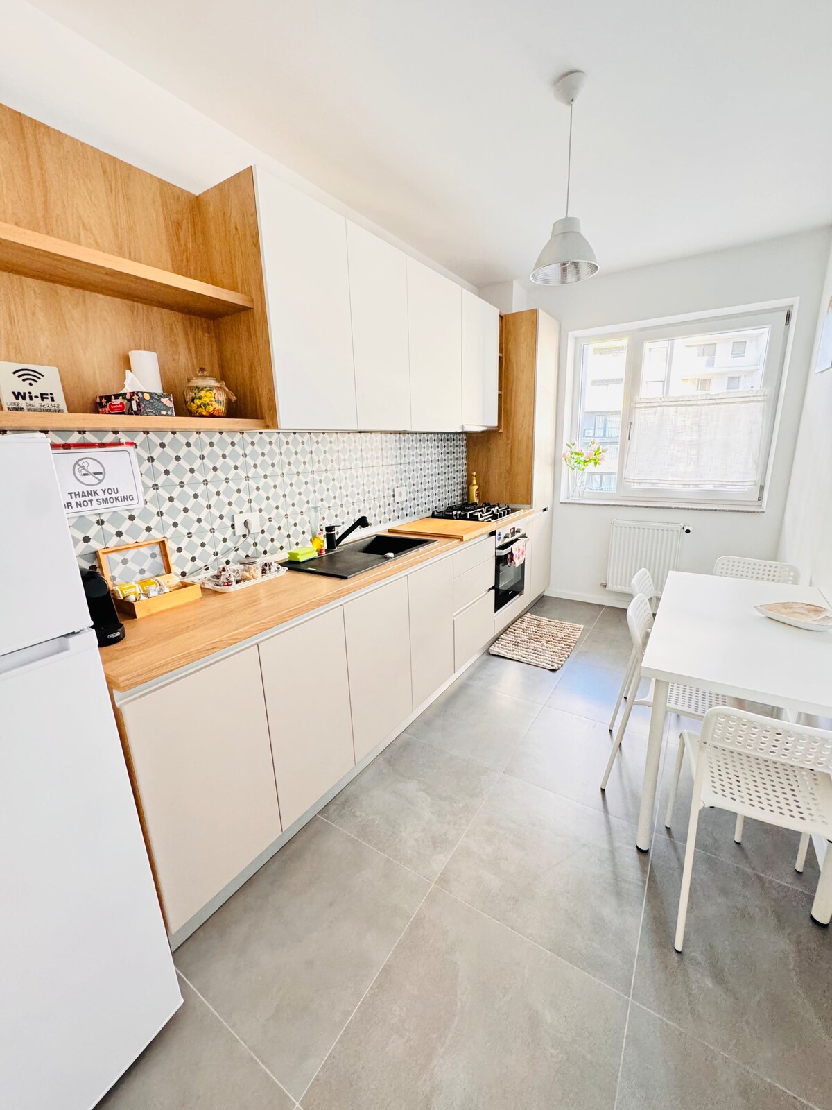 Căn hộ hiện đại, tầng 1, gần trung tâm Oradea (0,7 km), gần Ramada, Aeroport, Lotus Mall 2. Được cải tạo hoàn toàn, cung cấp WiFi miễn phí, điều hòa không khí, TV thông minh trong mỗi phòng, ban công cho người hút thuốc. Nó có phòng khách rộng rãi, nhà bếp được trang bị, phòng tắm có vòi sen, nhà vệ sinh dịch vụ, 2 phòng ngủ (giường cỡ king và giường sofa). Lý tưởng cho gia đình, bạn bè hoặc doanh nghiệp. Sức chứa tối đa: 5 người Gần các cửa hàng, phương tiện giao thông và điểm tham quan. Không tổ chức tiệc tùng/động vật!