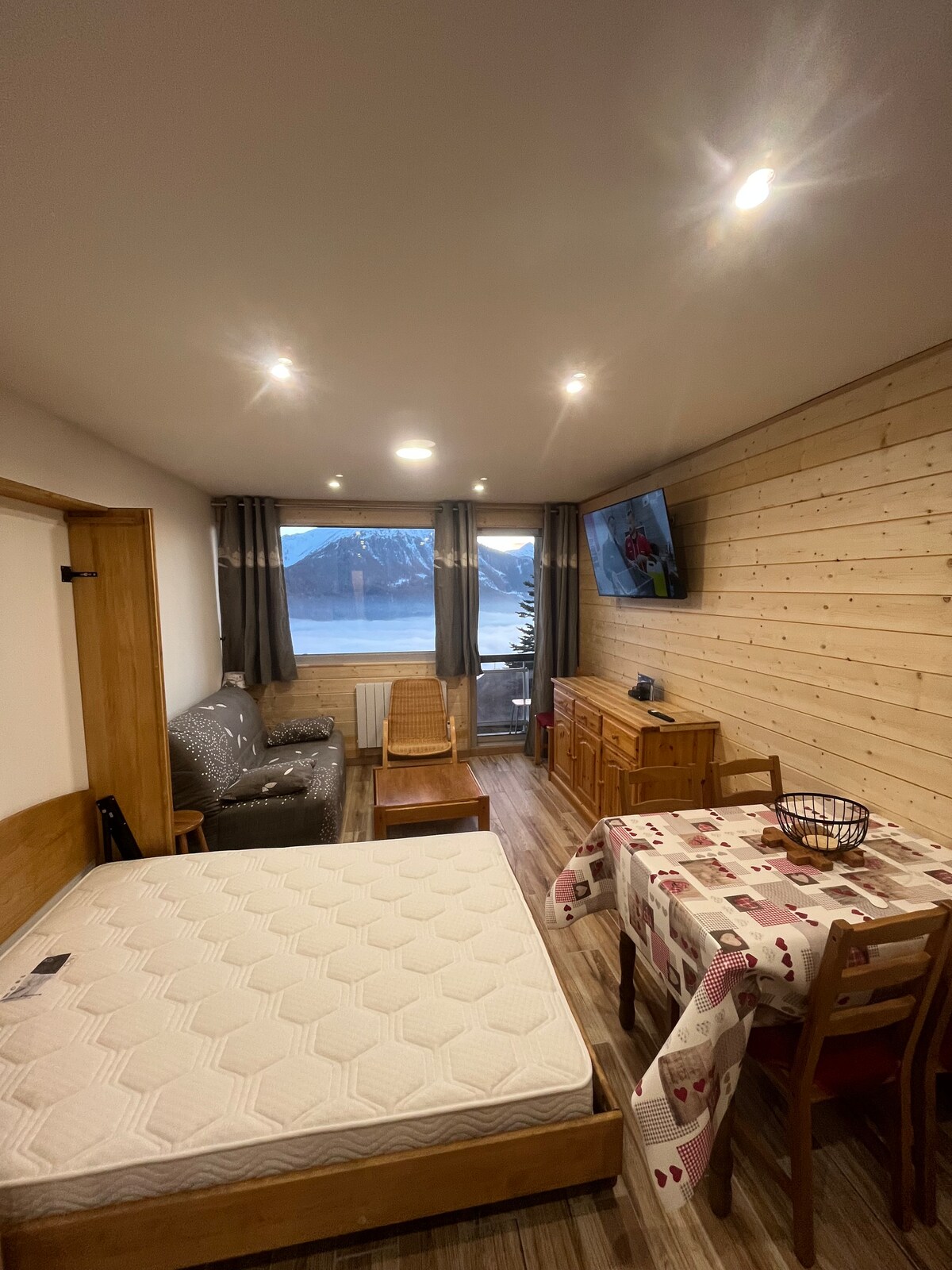 Căn hộ được trang bị đầy đủ cho 6 người ngay trung tâm khu nghỉ dưỡng Réallon tại Hautes-Alpes (tòa nhà Le Relais) 26 m2 ở tầng 1 (thang máy) Ban công hướng về phía Đông với tầm nhìn thoáng đãng ra thung lũng và núi bao quanh hồ Serre Ponçon Một phòng ngủ có giường đôi Khu vực ngủ có giường tầng Giường sofa trong phòng chính Lối vào có tủ và nhà vệ sinh (riêng biệt) Phòng tắm có vòi sen và máy sưởi khăn tắm Nhà bếp đầy đủ tiện nghi
