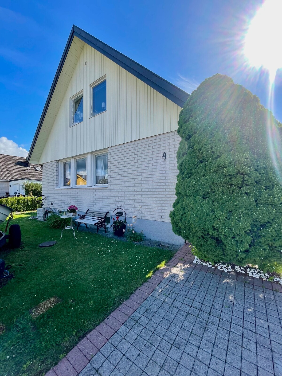 Căn hộ mới cải tạo rộng 65 m2 với không gian cho tối đa 6 người. Có 160 giường và sofa giường thoải mái, cũng như bổ sung thêm 2 80 giường dựa trên yêu cầu. Môi trường ngoài trời tươi tốt và trang trí nông thôn Scandinavia với tấm gỗ từ sàn đến trần. Phối màu yên bình với nhà bếp, máy giặt và máy sấy được trang bị đầy đủ tiện nghi. Khoảng cách đi bộ đến rừng, 10-15 phút đi xe hơi đến thị trấn, 7 phút đến hồ, sân golf và phòng tập thể dục. Trong vườn, vào mùa hè, có một sân hiên, bạt nhún, sân bóng đá, cây mọng quả và cây ăn quả.