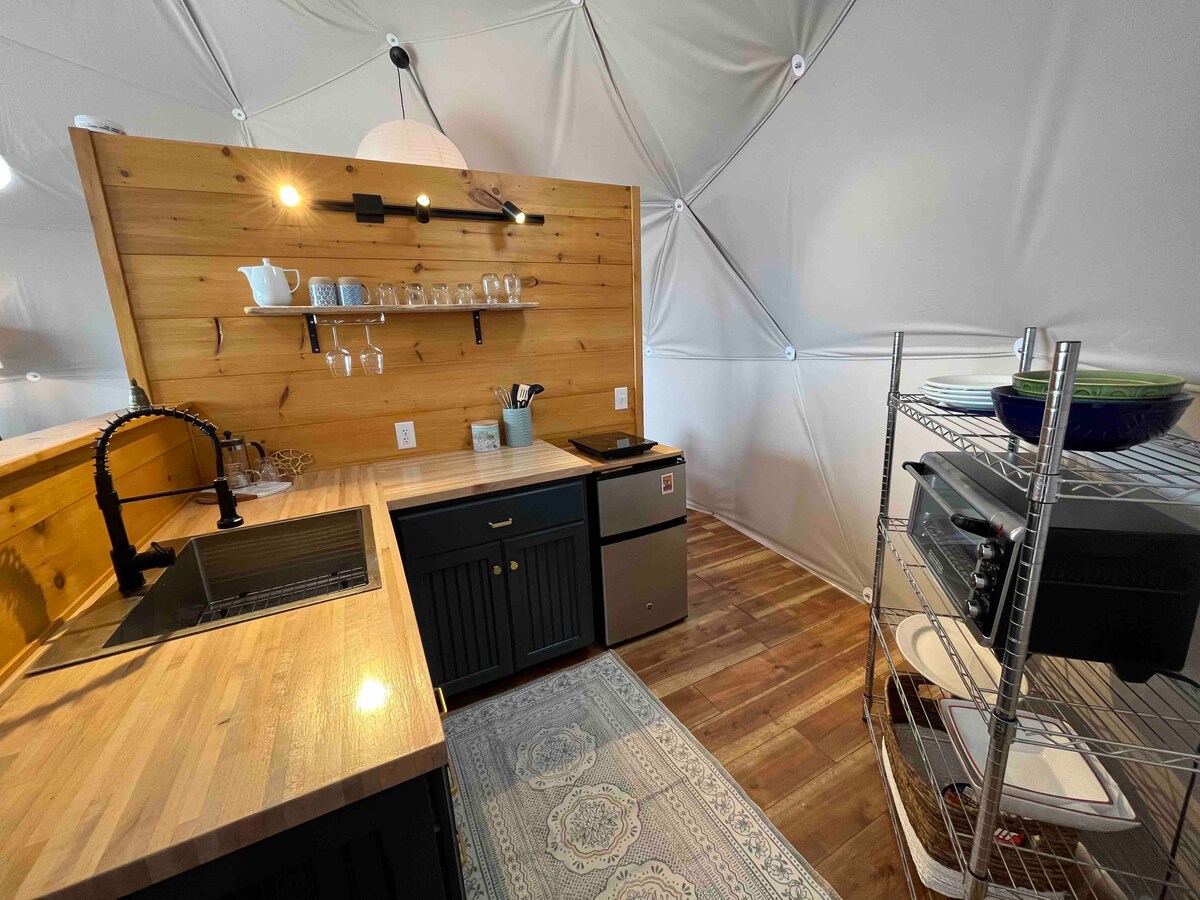 The modern Maine camping experience. Enjoy an unforgettable stay in a geodesic dome outfitted with detached bathroom and shower. A fantastic jumping-off point for your favorite outdoor sports with hiking and biking trails within 10 minutes of the property and 30 miles from Acadia National Park. Return from a day of exploration to views of Maine lakes, the national park and a roaring fire pit! @nomaddomehome on Insta for more pictures.
