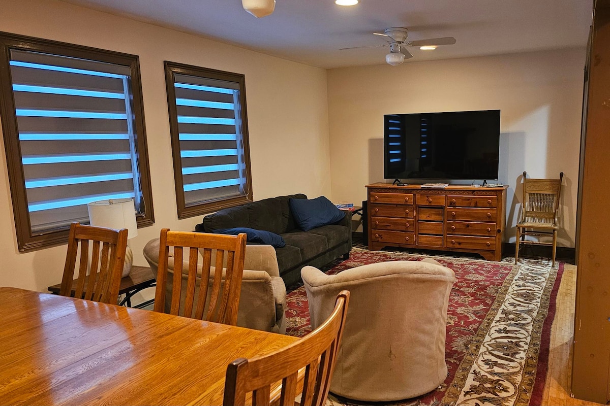 Căn hộ một phòng ngủ mới gần Jay Peak Resort. Cũng có thể đi thẳng đến đường mòn trượt tuyết RỘNG LỚN và đường mòn VASA ATV. Newport cách các nhà hàng, khu mua sắm và Lake Memphremagog một quãng đường lái xe ngắn. Thư giãn trên sân hiên hoặc bên lò sưởi khi những con bò gặm cỏ trên đồng cỏ gần đó. Chủ nhà sống trong nhà chính, nhưng với lối vào riêng biệt, bạn có thể mong đợi sự riêng tư với lợi ích là phản hồi nhanh cho bất kỳ nhu cầu nào của bạn.