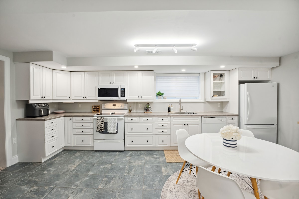 Chúng tôi nồng nhiệt chào đón bạn đến với ngôi nhà của mình! Căn hộ 1 phòng ngủ, 1 phòng tắm thú vị và rộng rãi này là nơi lý tưởng để bạn trải nghiệm tất cả những gì Ottawa cung cấp. Vị trí chiến lược chỉ cách công viên, nhà hàng và trung tâm mua sắm vài phút đi xe, bao gồm khu mua sắm Train Yards. Bạn chỉ cần đi bộ một đoạn ngắn là đến ga tàu điện ngầm VIA và ngay bên kia đường từ ga tàu điện ngầm LRT, làm cho nó trở thành một địa điểm tuyệt vời cho kỳ nghỉ vui vẻ tiếp theo của bạn.