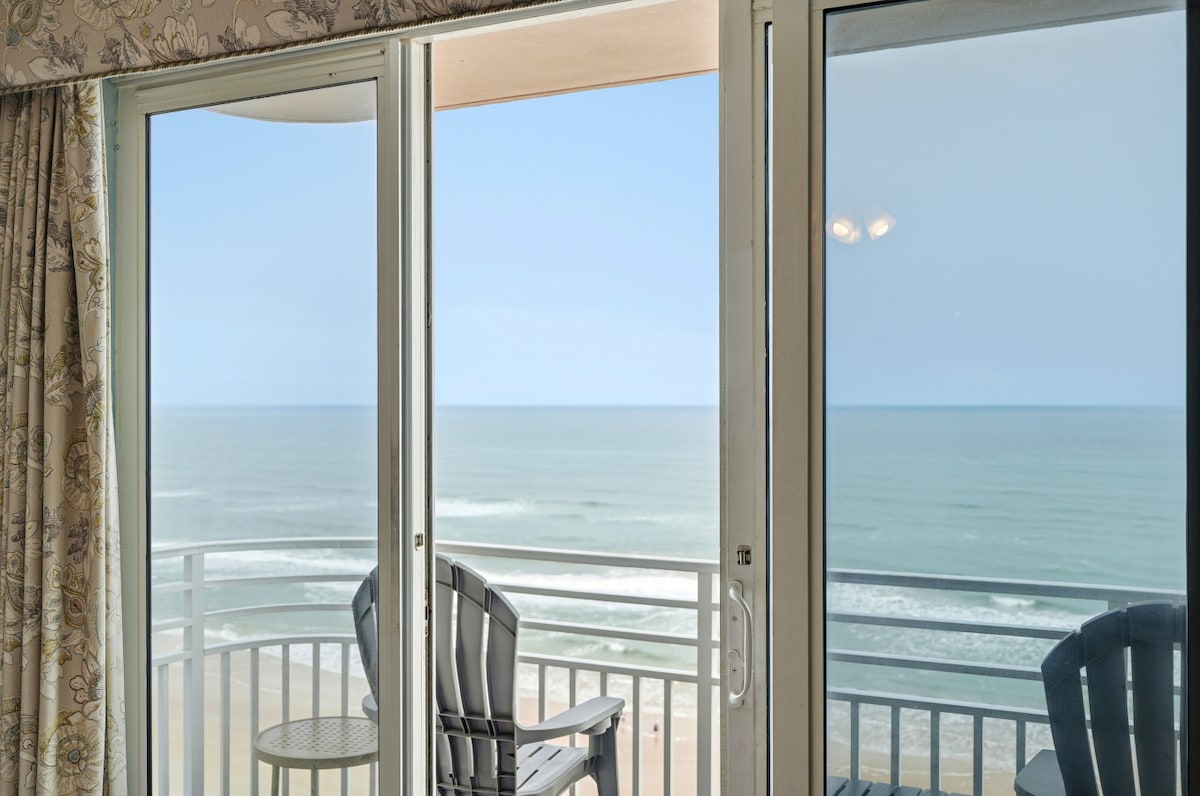 OCEANVIEW STUDIO in quiet Daytona Beach Shores. Beautifully redecorated with fresh paint job, new fridge and 2 person dinette. Queen size bed and love seat(not a pullout) The kitchenette has cooktop, microwave, toaster oven and KEURIG coffee maker. All the essentials for a stay that feels like home. Including beach chairs and beach towels! Cozy and relaxing. Perfect for singles or a couple(only sleeps 2). Comfortable and clean 4th floor SE facing balcony with spectacular sunrises!