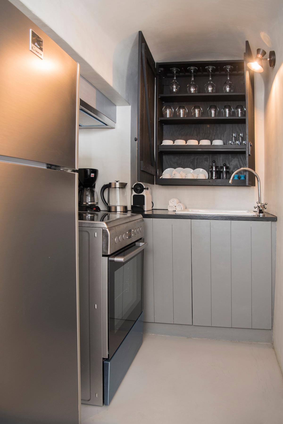 The traditional residences Olyra Traditional Houses, are in the heart of the medievial settlement of Pyrgos, very close to the imposing Kasteli (castle). A three minute walk in the stone laid pavements and side strees is enough to go from Olyra to the central parking of the village as well as the central square. Our houses are created in the same place where the bakery of the village was two centuries ago, with great respect and attachment to Santorinis¨ architecture. The decoration is character
