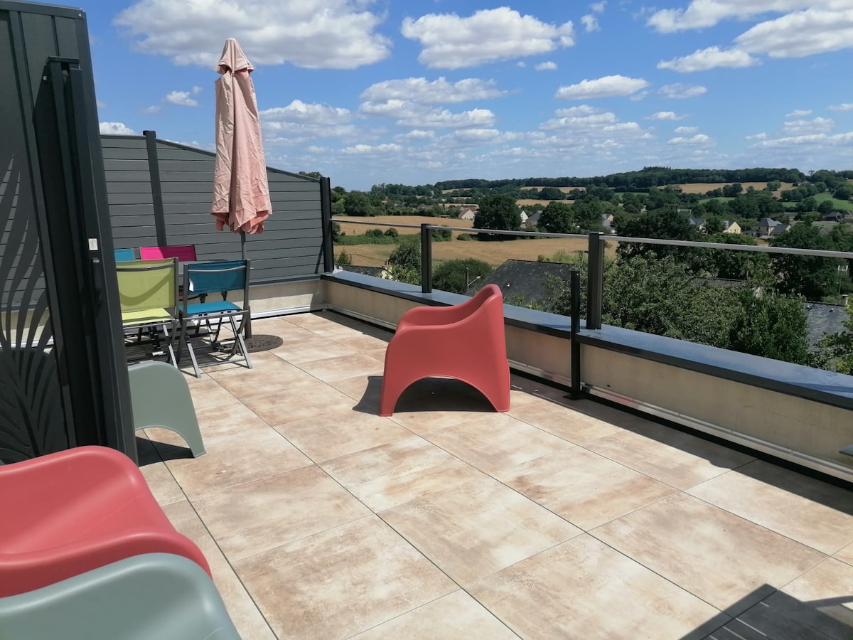 Biệt thự hiện đại trong một nhà nông trại được cải tạo (300m²) ngay trung tâm Perche. 4 phòng ngủ với bộ đồ giường chất lượng khách sạn, không gian sống rộng lớn, TV 90”, bể sục, 3 nhà vệ sinh. Sân thượng, BBQ, hồ bơi nhỏ có tầm nhìn ra đồi. Hoàn hảo cho gia đình và bạn bè. Bộ Raclette, mô phỏng đua xe, mát-xa và đầu bếp riêng có sẵn theo yêu cầu.