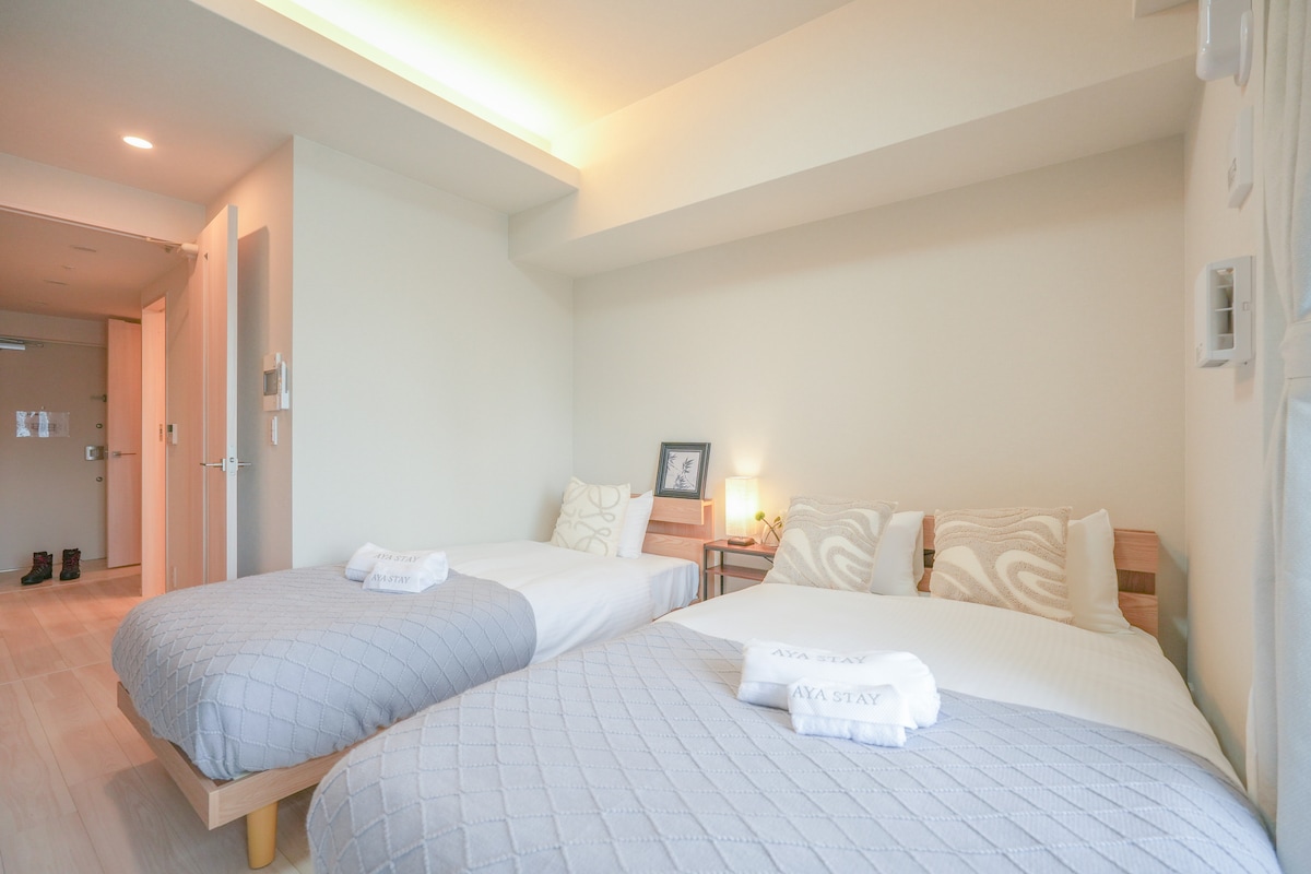 This designer room is a 2LDK measuring 51.3㎡. It's a 7-minute walk to Osaka Metro Nagahoribashi Station and just 1 minute by train to Shinsaibashi Station. From Nagahoribashi Station, you can reach Umeda Station in 10 minutes and Kansai Airport in 50 minutes. ◆ Features Located in the heart of Osaka Minami Supermarket and convenience store within a 5-minute walk Stress-free self-check-in system Available in Japanese, English, and Chinese High-speed Wi-Fi available