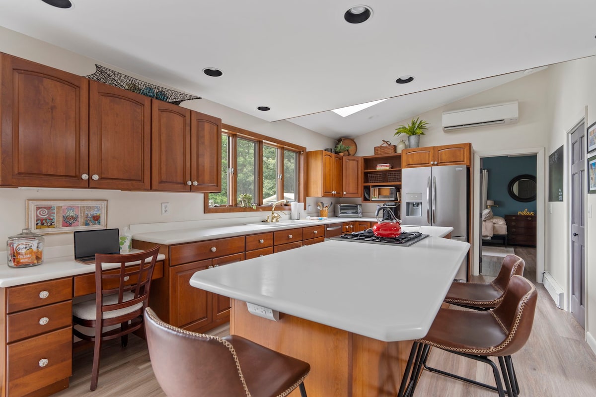 Chào mừng bạn đến với Barn on Pleasant, một tầng lửng quyến rũ trong một khu phố yên bình, lý tưởng cho sự thoải mái và tiện lợi. Chỗ ở được bảo trì tốt này cung cấp một không gian sống ấm cúng. Tầng lửng có bếp nhỏ, lò sưởi bằng đá đẹp và ghế sofa ngả lớn, thoải mái. Ghé thăm Bridgton vào mùa đông này, đi bộ đến hồ cao nguyên, cửa hàng và nhà hàng. Chỉ cách Pleasant Mt vài phút để đi bộ đường dài, trượt tuyết, cách North Conway 30 phút và cách Portland một giờ, một vị trí trung tâm hoàn hảo để thư giãn sau khi khám phá