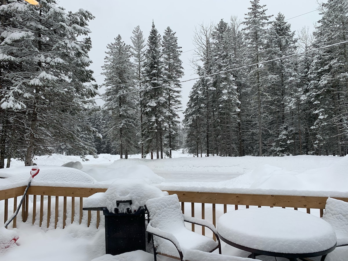 Thư giãn cùng cả gia đình tại chỗ ở yên bình này. Cabin này có sẵn trong suốt mùa đông. Rất nhiều con đường mòn trong khuôn viên và nhiều con đường mòn dài hơn gần đó cho những người đam mê ngoài trời! Lý tưởng cho atvers, xe trượt tuyết, xe trượt tuyết, người đi bộ đường dài, v.v. Chỉ cần mang theo ga trải giường và đồ tạp hóa. Gà của tôi đang làm việc chăm chỉ để đảm bảo có sẵn trứng tươi cho kỳ nghỉ của bạn. Tin tuyệt vời! Tôi vừa hoàn thành việc xây dựng một nhà tắm vòi sen riêng biệt với vòi sen đi bộ và bàn trang điểm.