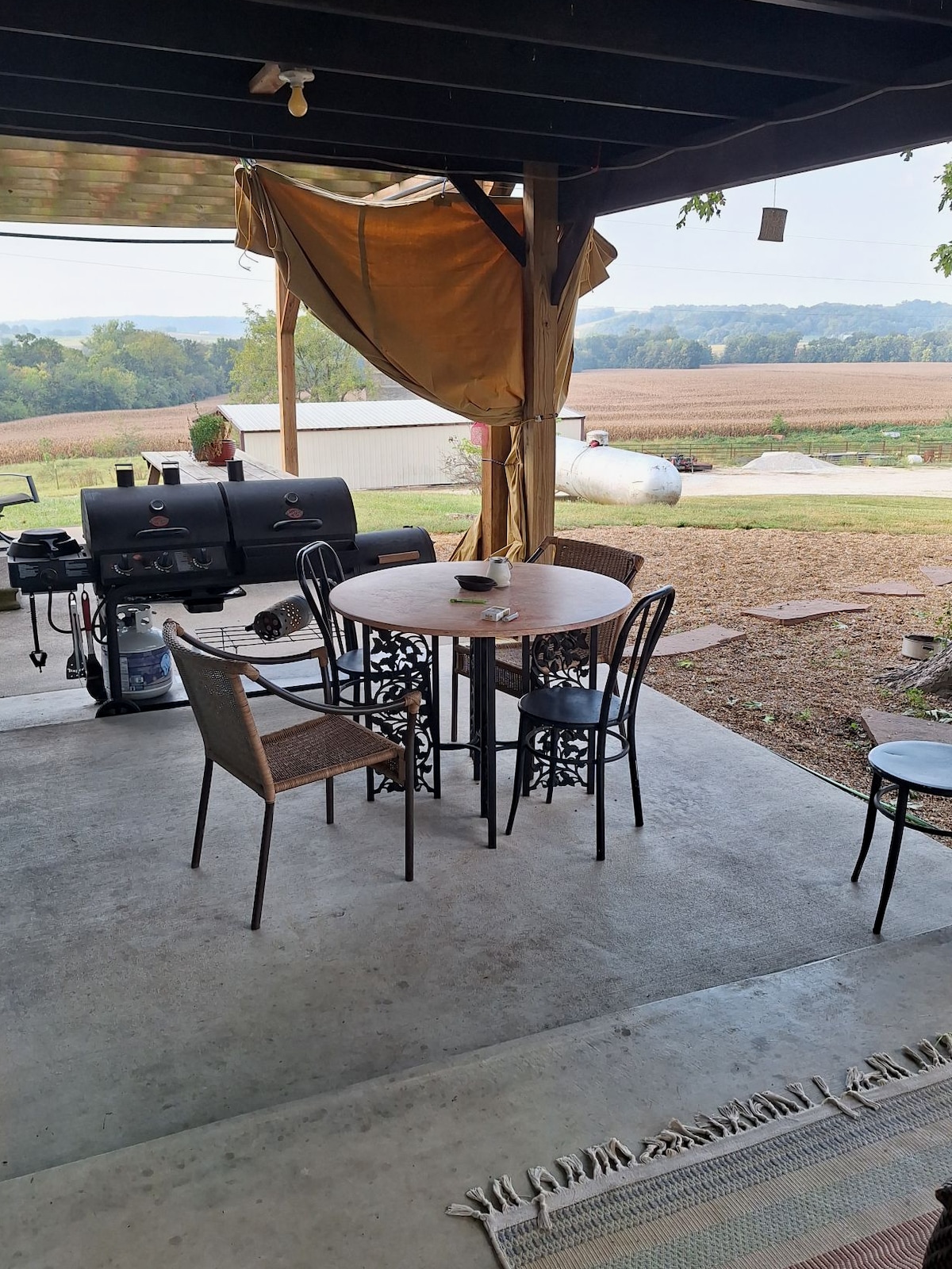 Chào mừng bạn đến với Cabin thùng rác lấy cảm hứng từ boho quyến rũ của chúng tôi, Highland lý tưởng cho 2-3 người lớn hoặc 2 người lớn và 2 trẻ nhỏ hơn. Trên lầu, bạn sẽ tìm thấy một chiếc giường cỡ king thoải mái trong căn gác, trong khi tầng dưới có nệm futon ấm cúng trong không gian sống chính. Bếp đầy đủ tiện nghi được trang bị mọi thứ bạn cần. Phòng tắm đầy đủ với buồng tắm đứng ở tầng dưới. Trải nghiệm một kỳ nghỉ nông thôn thanh bình với hoàng hôn ngoạn mục và môi trường xung quanh yên bình, chỉ cách Versailles vài phút.