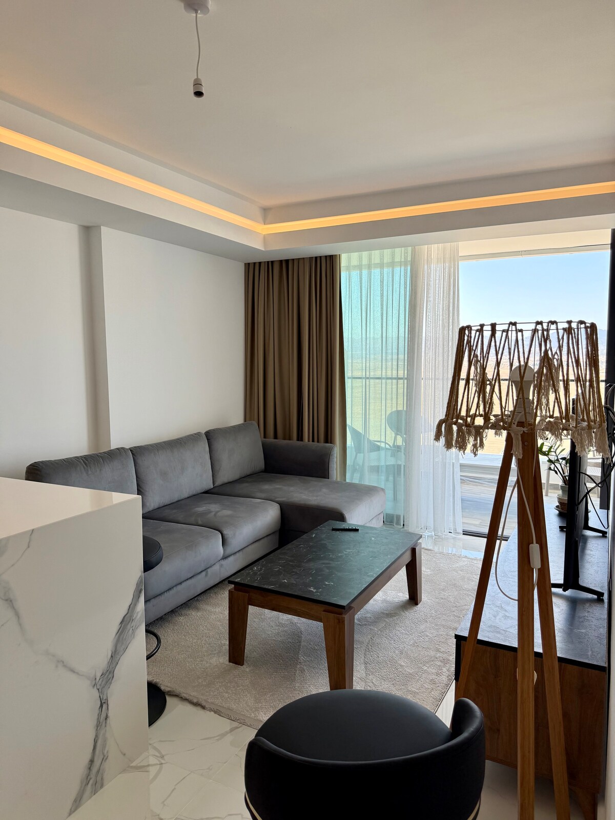 Grand Sapphire C Blok’ta yer alan bu deniz manzaralı stüdyo daire, konfor, manzara ve prestiji bir arada sunan nadir konaklama seçeneklerinden biridir. Burada konaklamak yalnızca bir gece geçirmek değil, Akdeniz’in dinginliğini hissederek güne başlamak ve günün yorgunluğunu manzaraya karşı atmak demektir.Dairenin en güçlü özelliği, kesintisiz ve etkileyici deniz manzarasıdır. Sabahları güneşin deniz üzerinden doğuşunu izleyerek uyanabilirsiniz.