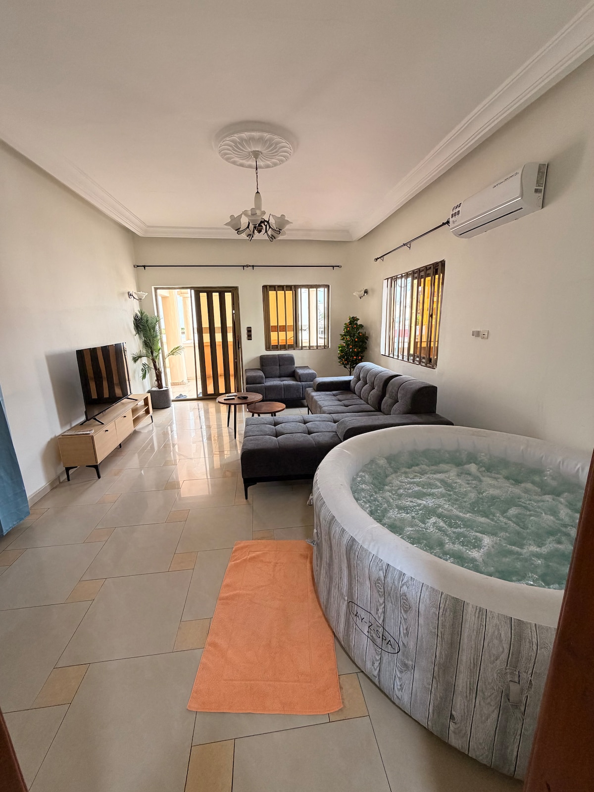 Chào mừng bạn đến với thiên đường yên bình của bạn! Nằm trong một khu vực yên tĩnh và an toàn, căn hộ F2 tráng lệ này kết hợp sự thoải mái, hiện đại và thanh lịch để mang đến cho bạn một kỳ nghỉ khó quên!. Chỗ ở này có lối vào cá nhân, vườn, phòng khách ấm cúng và phòng ngủ thanh lịch và thư giãn: Tận hưởng giường ấm cúng với ga trải giường chất lượng khách sạn cho những đêm yên bình. Vị trí: QUẬN JAK, AKPKAKPA, COTONOU KHÔNG BAO GỒM CHI PHÍ ĐIỆN (xem bên dưới)