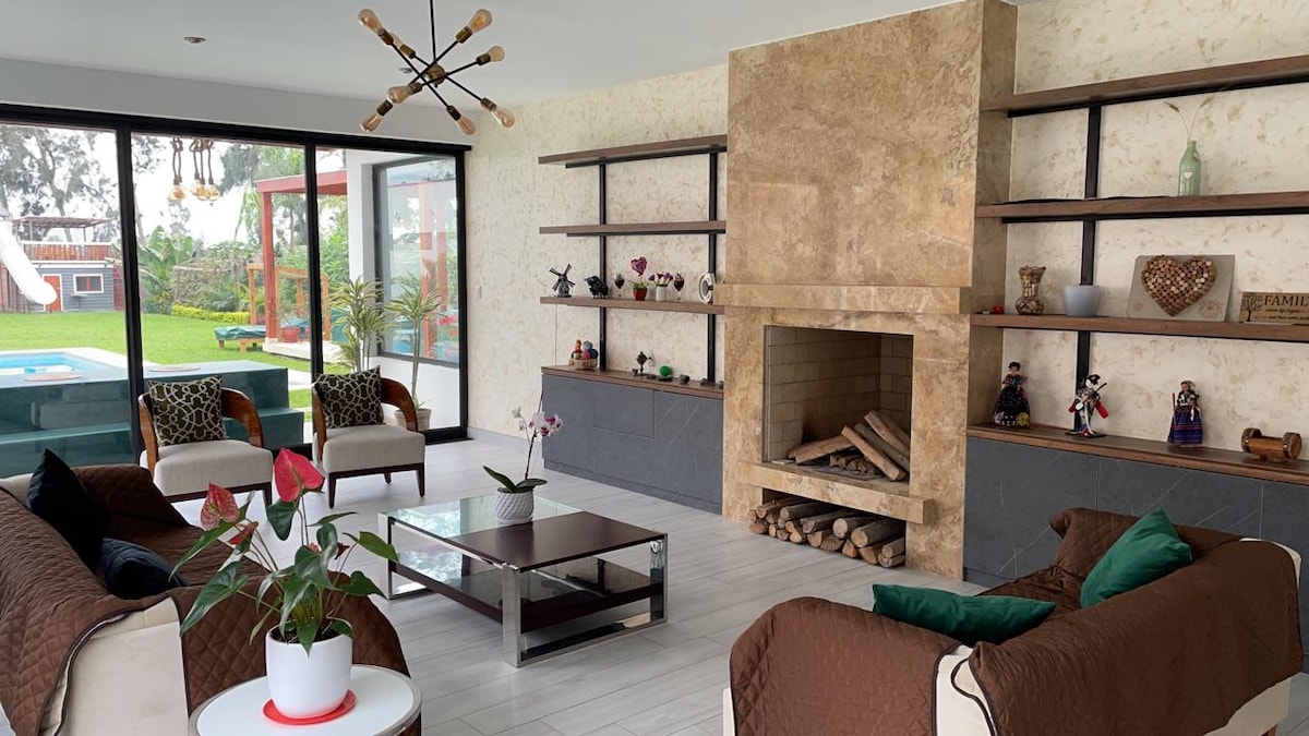 Casa de campo ideal para familias y grupos que buscan disfrutar juntos con total privacidad. Cuenta con un amplio jardín privado, perfecto para que los niños jueguen con seguridad mientras los adultos descansan y comparten. Disfruta de la piscina, parrilladas en familia y noches agradables alrededor de la fogata, en un ambiente tranquilo y cómodo. La casa ofrece: 🌿 Jardín privado 💦 Piscina 🔥 Fogata 🍖 Parrilla y caja china 🍽 Cocina equipada 📺 TV 🌐 Wifi 🚗 Estacionamiento privado