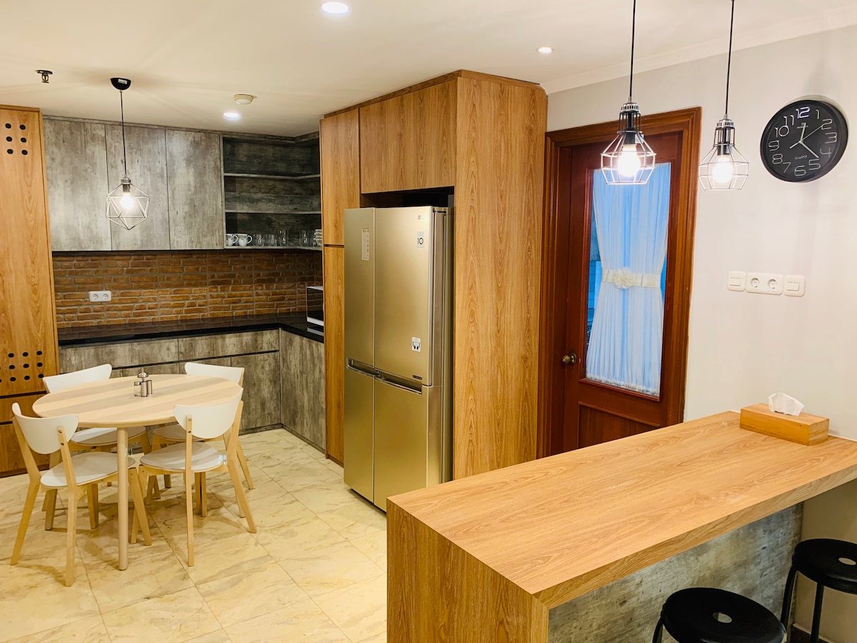 Căn hộ cao cấp mới được cải tạo, phong cách, lớn với 3 phòng ngủ ngay trung tâm Jakarta. Thích hợp cho doanh nghiệp hoặc gia đình hoặc chuyến đi giải trí với bạn bè. Căn hộ nằm ở vị trí chiến lược ở trung tâm, gần cổng đường cao tốc đảm bảo giao thông trơn tru từ/đến sân bay và giao thông công cộng. Rất dễ dàng đến Trung tâm hội nghị, trung tâm mua sắm, nhà hàng hoặc tham quan bằng taxi (GoJek) khoảng 5 - 15 phút lái xe. Với cơ sở thể thao miễn phí và bãi đỗ xe trong khu vực căn hộ.