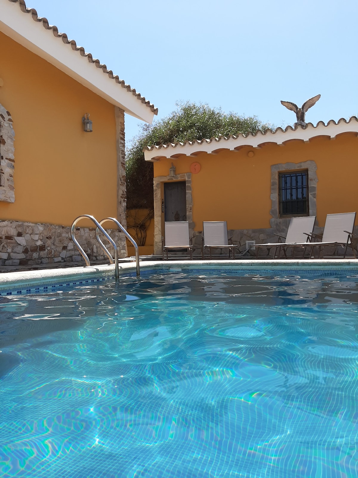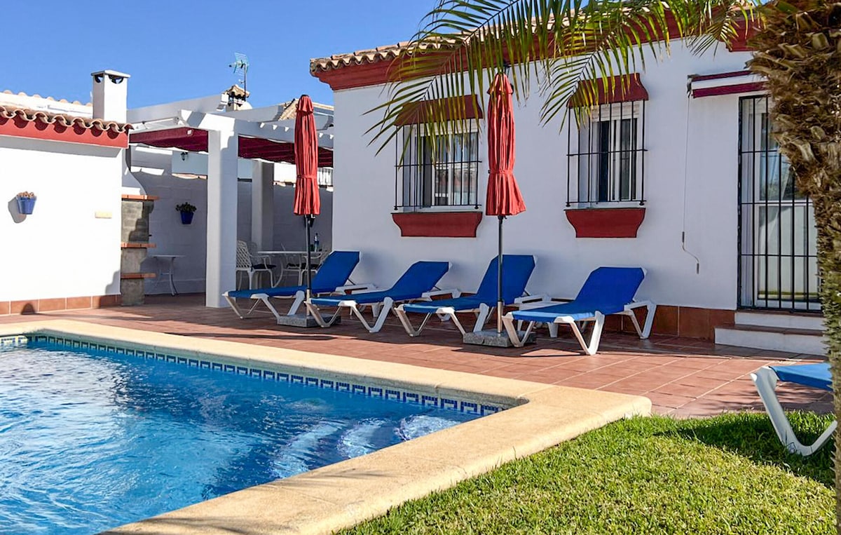 Biệt thự đẹp với khu vườn rộng lớn. Ngôi nhà gồm ba phòng ngủ đôi, bếp đầy đủ tiện nghi, phòng tắm và phòng khách. Mỗi phòng ngủ có một quạt trần. Khu vườn có sân hiên và khu vực đỗ xe lớn. Nó cũng có một hồ bơi nước mặn riêng với khu vực tắm nắng và khu vực bong bóng, vòi sen ngoài trời và nhà vệ sinh. Có sẵn bếp nướng gas, bếp nướng than củi và paella. Chỉ cách bãi biển 12 phút lái xe.
