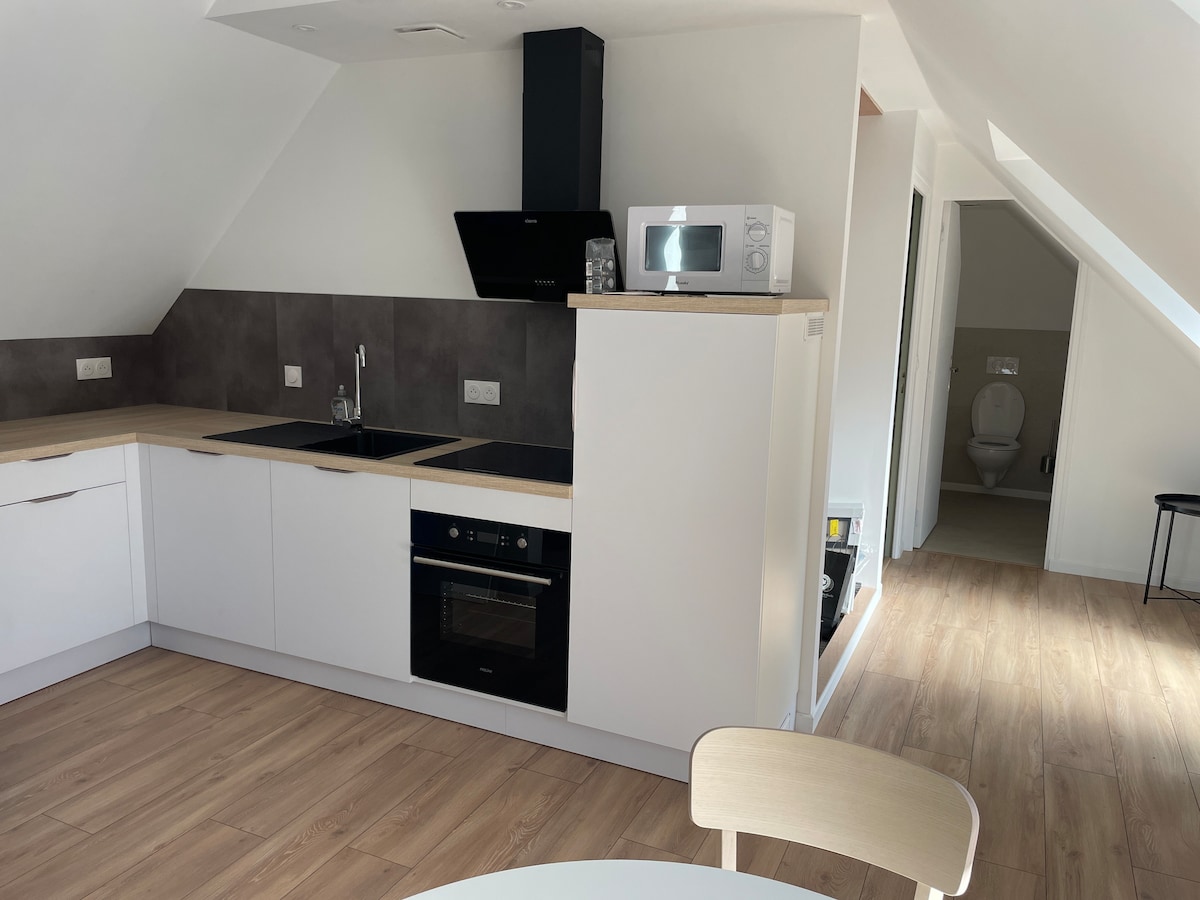 Paimpol đi bộ (cách bến tàu 5 km đến đảo Bréhat) Vị trí tuyệt vời Cách cảng 150 m. Cách trung tâm thành phố và tất cả các cửa hàng 5 phút. Cách ga 10 phút Cách Bãi biển Tossen 15 phút Trong một nơi cư trú một tầng nhỏ có thang máy và chỗ đỗ xe an toàn. Thuê studio được cải tạo rộng 32 m2 với sân thượng hướng về phía nam. Bếp, phòng tắm, khu vực phòng ngủ với giường cỡ queen 160x200,phòng khách 2 ghế bành Sàn: Ghế bàn và ghế bành Không hút thuốc. Không được phép mang theo thú cưng