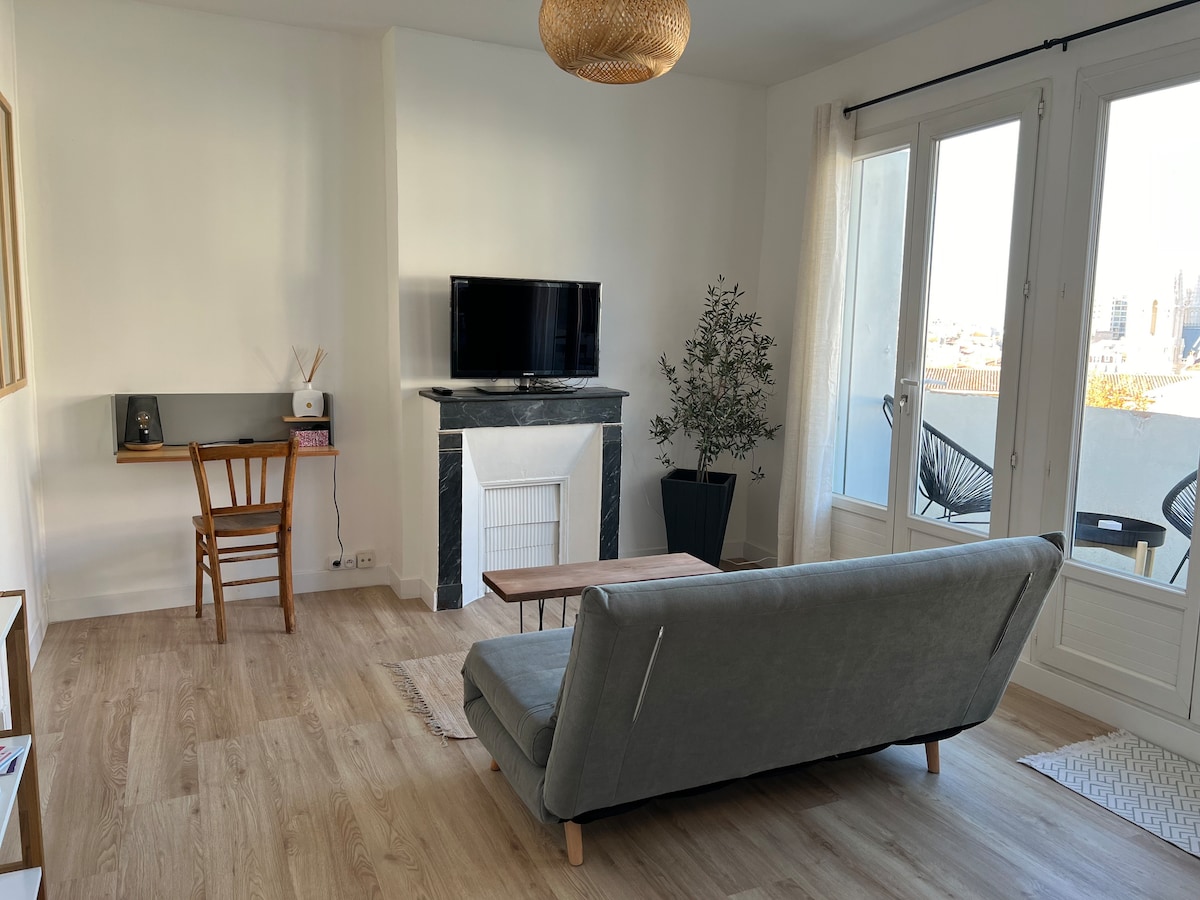 T2 45 m2, tầng bốn không có thang máy. Sân thượng lớn và tầm nhìn ra Nhà thờ Đức Bà La Garde, nhà bếp sáng sủa, đầy đủ tiện nghi, phòng khách, phòng khách, 1 phòng ngủ, phòng tắm / vòi sen, nhà vệ sinh. Gần Cours Julien và Vieux Port, các nhà hàng, phương tiện giao thông. Ga tàu Saint Charles đi bộ 15 phút (hoặc tàu điện ngầm Notre Dame du Mont) Căn hộ ấm cúng với tầm nhìn tuyệt vời, tầng bốn (không có thang máy). Central Marseille, gần Cours Julien và Vieux Port. Ga đường sắt Saint Charles, 15 phút đi bộ (hoặc tàu điện ngầm Notre Dame du Mont)