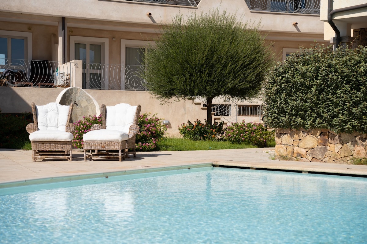 L'appartamento stato progettato e ristrutturato nel 2024 in modo sobrio ed elegante, in modo che lo sfondo dell'isola della Maddalena e dell'Isola di Spargi potesse parlare da solo. Una fusione di legni nautici, tonalità mielate e pietra lattiginosa, sullo sfondo abbagliante della natura. Per la magica vista dal gigantesco divano o per la splendida piscina condominiale, tornerai anno dopo anno. E ci sono due camere, ciascuna con letto matrimoniale e un letto singolo e due bagni signorili.