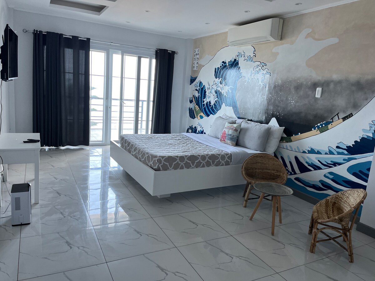 Experience beachfront bliss in our 2nd floor studio nestled within a charming two-story villa! Step onto the balcony, sip your morning coffee, and breathe in the salty breeze as you gaze upon breathtaking ocean views and magnificent sunsets. With direct beach access just steps away, indulge in sun-kissed days and tranquil evenings by the shore. Book now and let the waves serenade you to paradise! Have fun with the whole family at this stylish place.
