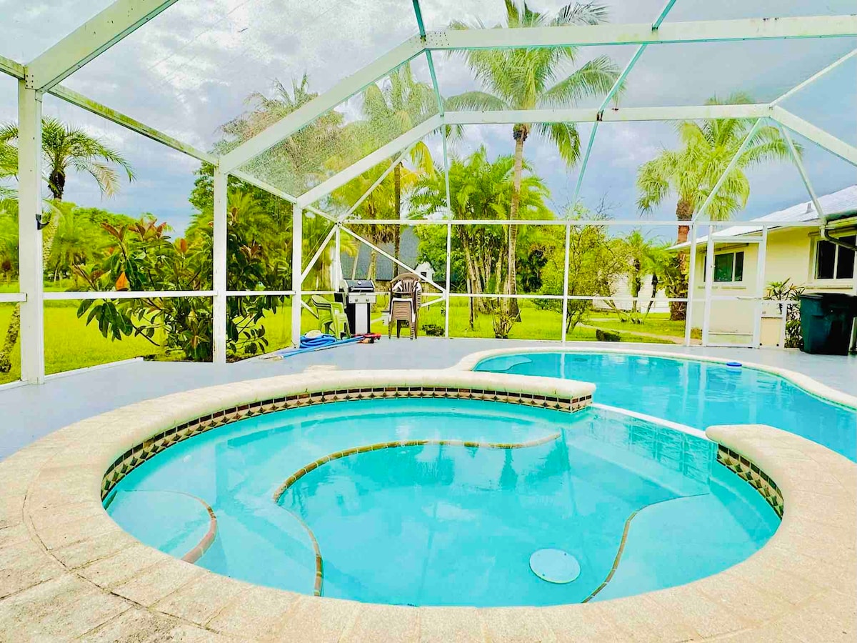 Nhà khách đẹp, rất riêng tư và sạch sẽ ở Jupiter Farms. 1 phòng ngủ 1 phòng tắm có bếp nhỏ. Sàng lọc trong bao quanh hiên nhà. Khu phố yên tĩnh, rất an toàn. Môi trường hoàn hảo để thư giãn và nghỉ ngơi ở thiên đường. Gần thị trấn nhưng cách xa mọi thứ. Blue Ridge Farms 1 phút Lady Jean Ranch 2 phút White Trail Club, A Flower Farm 9 phút Sân vận động Rodger Dean 14 phút Sân bay PBI 24 phút