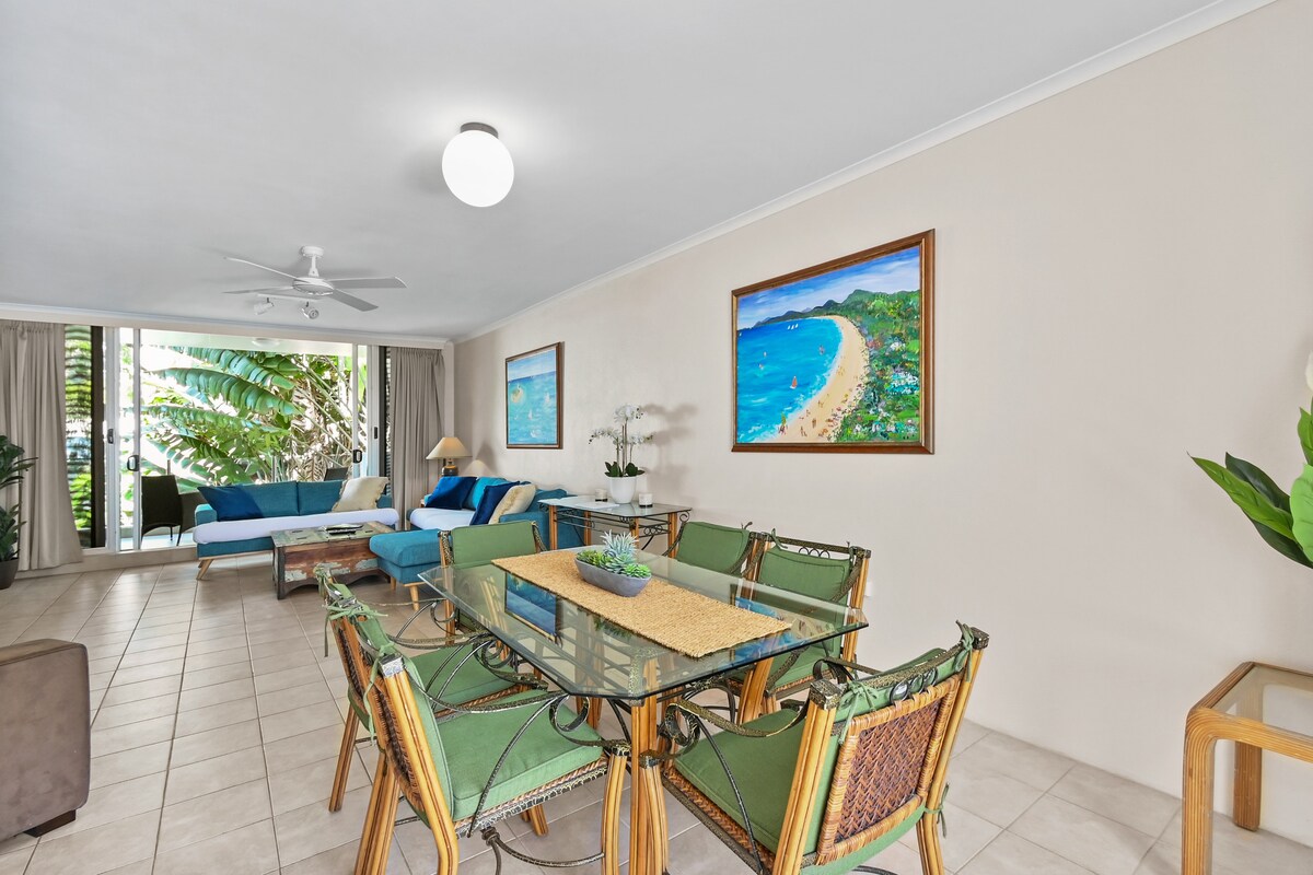 Căn hộ ở tầng trệt của tôi nhìn ra hồ bơi rợp bóng cây khổng lồ của khu nghỉ dưỡng "Drift", và cũng có thể là nơi được tìm kiếm nhiều nhất trong khu phức hợp. Khu nghỉ dưỡng nằm đối diện với bãi biển tại Palm Cove và được bao quanh bởi các quán cà phê và nhà hàng, và dễ dàng tiếp cận các sân golf, thể thao mạo hiểm gần đó và Great Barrier Reef & Daintree Rainforest mang tính biểu tượng. Palm Cove nằm trên một dải bờ biển cát dài 4km, cách Cairns CBD & Sân bay 20 phút về phía bắc.
