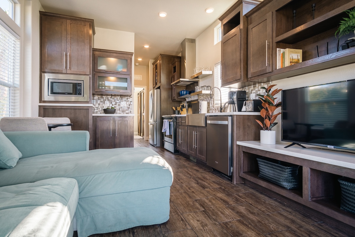 Đi bộ đến nhạc sống, phòng trưng bày và đường mòn hoặc thư giãn trên sân hiên dưới một tán cây tùng tại ngôi nhà nhỏ quyến rũ từ những năm 1930 này được khôi phục hoàn toàn để mang lại sự thoải mái tinh khiết. Môi trường xung quanh hiện đại mộc mạc với wifi đáng tin cậy, nhà bếp đầy đủ đồ, trang trí sang trọng, ánh sáng thủ công và những nét độc đáo ở mọi góc. Ngủ trưa, đọc sách hoặc ngắm sao trên võng. Chơi ukulele và các trò chơi trên gác xép. Áo choàng, loa bluetooth, Adventure Pass được cung cấp.