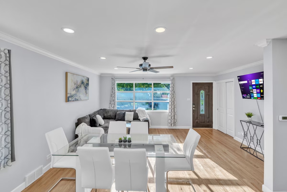 Ngôi nhà theo phong cách trang trại 3 giường, mới được cải tạo, rộng rãi, 3 giường 2 phòng tắm này nằm trên một khu đất lớn. Nằm gần một hwy lớn, các nhà hàng và một khu mua sắm. Chỉ 15 phút đến Sân bay Midway, 25 phút đến O'Hare và 25 phút đến Trung tâm Chicago. Đây là một địa điểm tuyệt vời để tiếp cận mọi thứ! Hoàn hảo cho gia đình, khách du lịch và khách đi công tác. Bạn phải từ 21 tuổi trở lên mới có thể đặt phòng. Bạn phải cung cấp ảnh hợp lệ về D.L. hoặc Giấy tờ tùy thân do tiểu bang cấp theo yêu cầu.