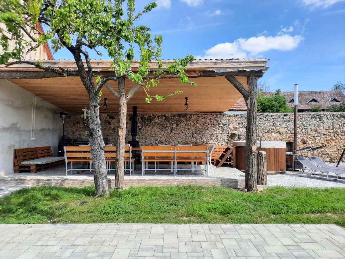 Nhà khách của chúng tôi mang đến bầu không khí ấm cúng với 8 phòng, có sức chứa 16 người lớn và 6 trẻ em. Mỗi phòng có phòng tắm riêng. Ngôi nhà có bếp rộng rãi, đầy đủ tiện nghi và khu vực ăn uống - sinh hoạt chung, cùng với sân thượng toàn cảnh của Balaton. Trong vườn có các tiện nghi để nướng, nấu ăn và ăn uống. Bồn tắm nước nóng của chúng tôi, phù hợp với 8 người trở lên, có sẵn quanh năm. Bãi biển cách đó 5 phút đi bộ và trung tâm thành phố cách chỗ ở 3 km.