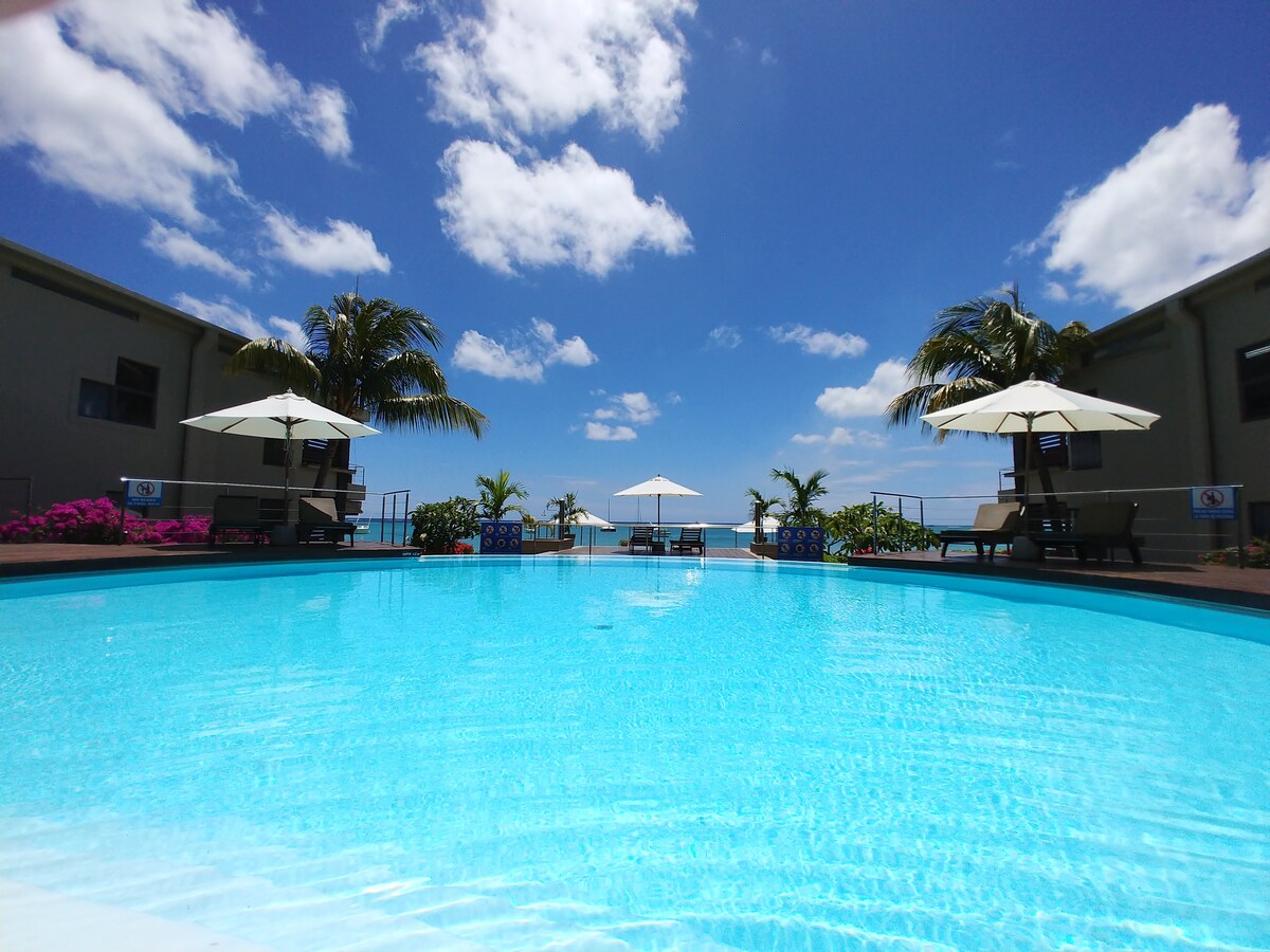 Ở tại căn hộ hướng biển mới được liệt kê của chúng tôi ở Pointe aux Piments, phía tây bắc Mauritius. Nó cung cấp 3 phòng ngủ (3 giường đôi), 3 phòng tắm (2 phòng tắm khép kín) và một nhà bếp/phòng khách mở lớn, mở trên sân thượng riêng hướng ra biển. Căn hộ được trang bị đầy đủ tiện nghi (máy giặt, máy rửa chén, điều hòa, v.v.) và có chỗ đỗ xe miễn phí. Nằm trong một khu phức hợp riêng tư và an toàn, một hồ bơi vô cực cũng có sẵn cho cư dân (có hồ bơi trẻ em) và lối đi thẳng ra bãi biển.