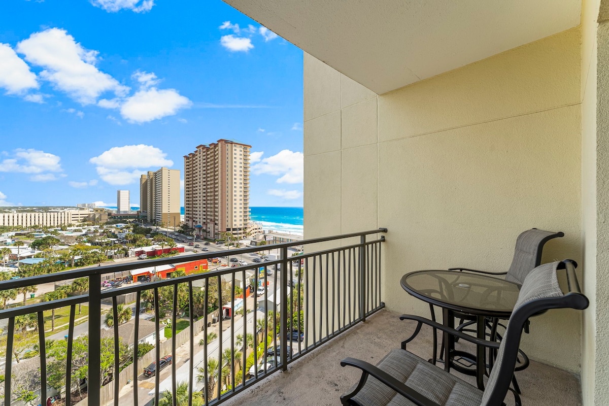 Welcome to Namastay at the Beach! This 1BR/2BA condo sits right on the beach! Enjoy breathtaking, oceanview sunsets from the 14th floor. Discounts are automatically applied for 5+ & 7+ night stays! A king bed, twin bunks, and a queen sleeper fit the whole family. Enjoy a fully stocked kitchen plus a spacious balcony with electric grill. Sterling Breeze resort offers a year-round heated pool, hot tub, tiki bar & gulf-view gym. Just 0.5 miles from Pier Park, your perfect beach getaway awaits!