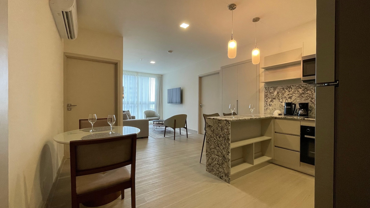 Chào mừng đến với PH Yoo Panama mang tính biểu tượng. Căn hộ 180 m2 độc quyền này có tầm nhìn ngoạn mục ra biển. Tận hưởng hai phòng với máy lạnh, ban công, phòng khách và phòng ăn với TV thông minh, wifi tốc độ cao, nhà bếp được trang bị, phòng tắm hiện đại và trung tâm giặt ủi. Ngoài ra, bạn sẽ có quyền sử dụng hồ bơi, khu vực giao lưu và tất cả các tiện nghi độc quyền của tòa nhà, hoàn hảo để tận hưởng với gia đình hoặc bạn bè. Sống một kỳ nghỉ khó quên trong bầu không khí ấm cúng và đầy đủ tiện nghi!