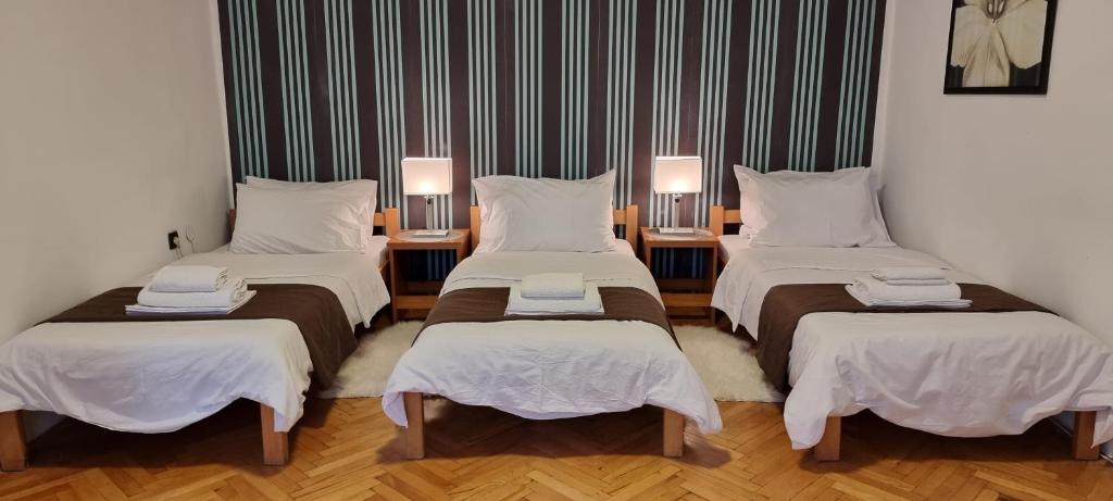 Dobro dosli u nas veoma prostran i komforan apartman pogodan za smeštaj do pet osoba .Apartman ima 80 m2 i idealan je za odmor bilo da dolazite turisticki ili poslovno.Nalazimo se u mirnom delu Beograda na 4 km od centra grada i svega pet minuta hoda do gradskog prevoza.Poseduje privatan parking obezbedjen kamerama.Apartman je uredjen tako da gostima pruzi osecaj udobnosti,mira i privatnosti.Trudimo se da svaki gost ima prijatan boravak i da iz naseg apartmana ponese najlepse utiske.