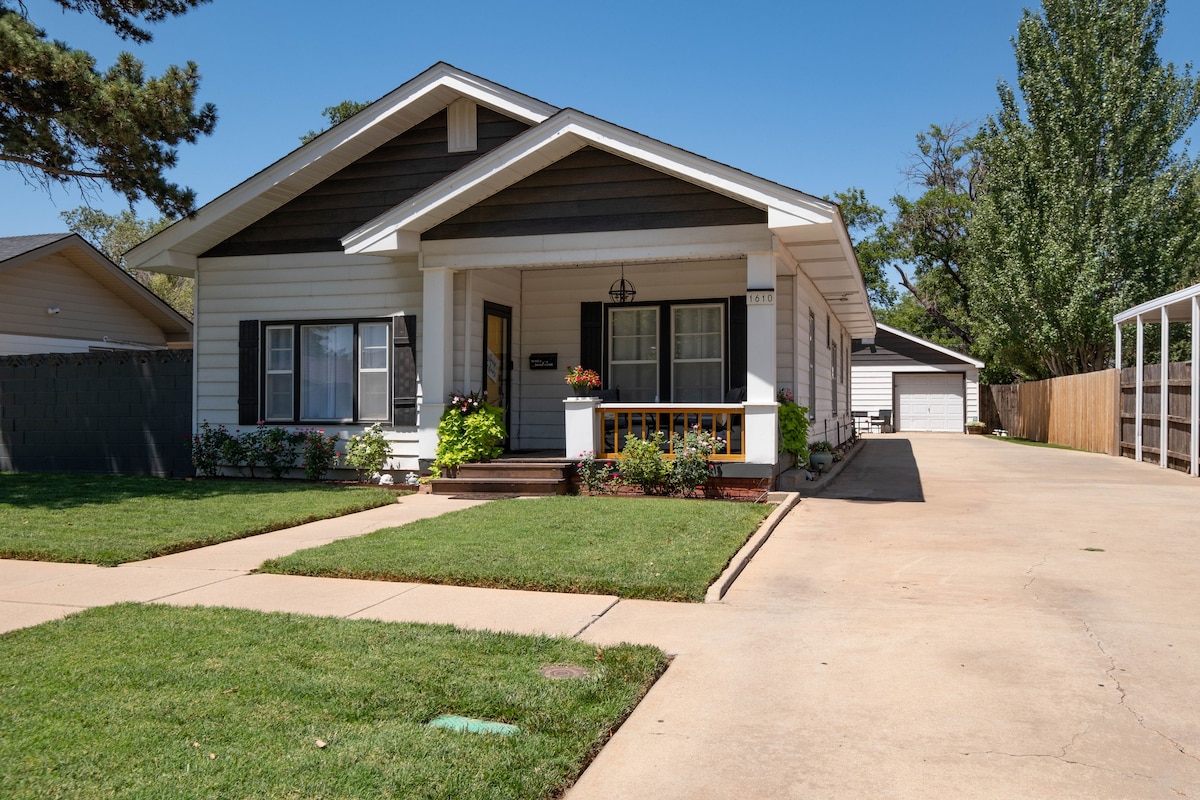 Được nâng cấp một cách đáng yêu, ngôi nhà năm 1945; 2 phòng ngủ, phòng tắm đầy đủ, nằm ở trung tâm khu vực lịch sử. Được đặt tên vì Amarillo nằm giữa Chicago và LA trên US 66 nổi tiếng. Sân riêng, có hàng rào cho thú cưng của bạn và một sân hiên có mái che cho bạn. 5 phút đến công viên bóng chày trung tâm thành phố. Nhà hàng, cửa hàng và cửa hàng tạp hóa - 5 phút lái xe. Austin Park với sân chơi ba dãy nhà đi bộ. Gần Công viên tiểu bang Palo Duro Canyon, Nhà hàng bít tết Big Texan, Trung tâm sự kiện Starlight Ranch, Vườn bách thảo. Chỗ đỗ xe miễn phí trên đường phố ở phía trước.