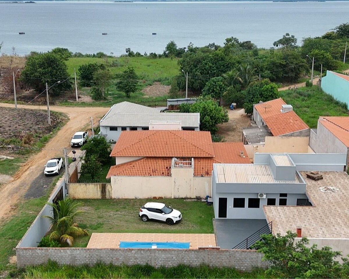 De frente ao Rio Paraná , em Pres. Epitácio. Ficamos em um Residencial portão fechado com belíssima praia à frente da casa. Possui deck superior com vista ao rio e ao pôr do sol eleito "O mais bonito do Brasil". Três quartos sendo duas suítes (todos com ar-condicionado) um banheiro social, um banheiro área da piscina. Piscina 6X 3 (aquecimento opcional de out a março) Próximo a excelentes opções de aluguel de barcos para pesca. À 16 minutos de Pres. Epitácio . @ranchoalemdohorizonte