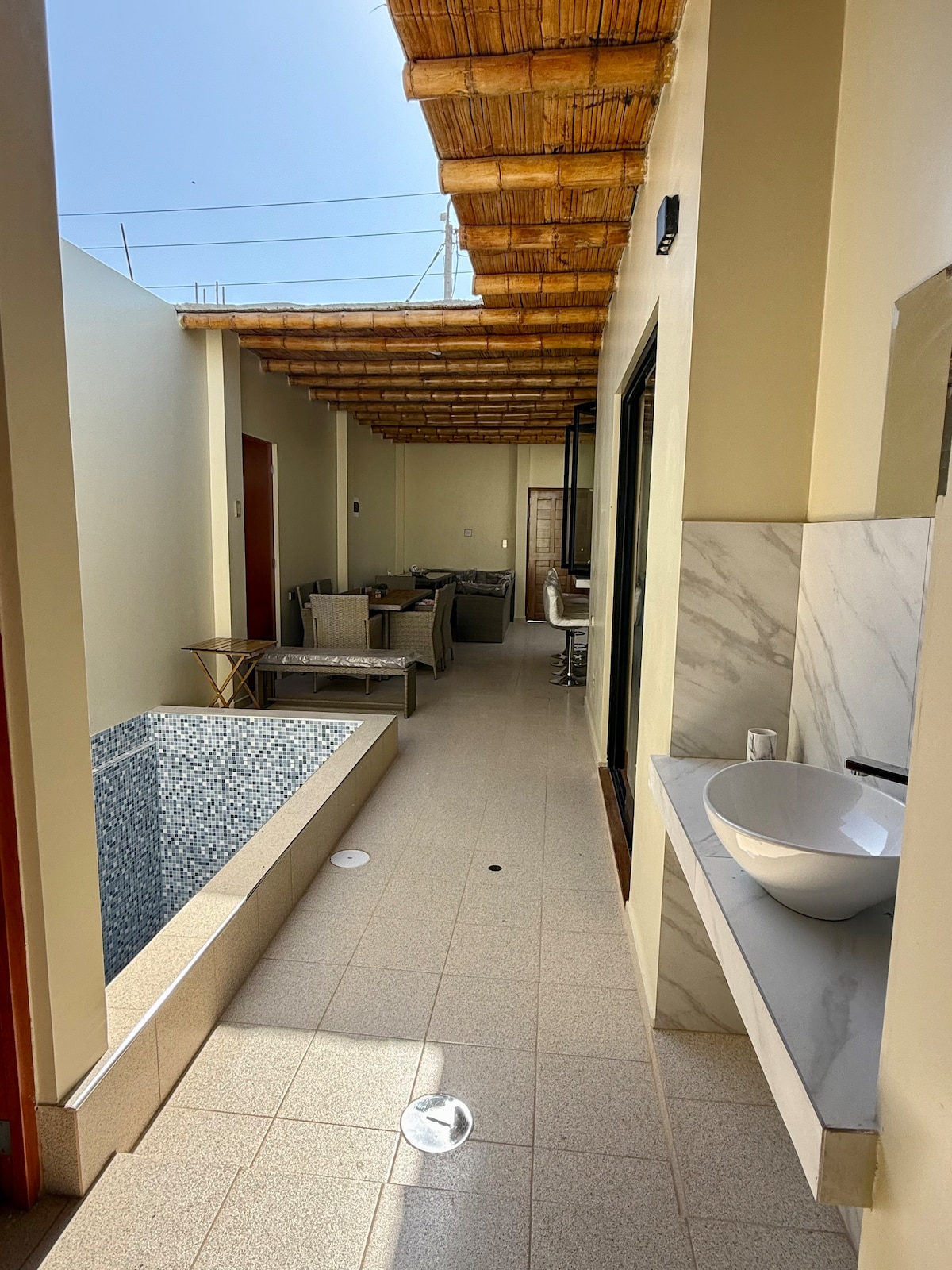 Hãy tưởng tượng điều này! Bạn thức dậy với ánh mặt trời Pisco vuốt ve làn da của bạn, đi lên tầng ba và đắm mình trong một hồ bơi riêng trên sân thượng, với tầm nhìn mời gọi thư giãn hoàn toàn. Đây là trải nghiệm đang chờ đón bạn trong ngôi nhà ba tầng quyến rũ của chúng tôi, sự bổ sung hoàn hảo cho kỳ nghỉ của bạn. Nằm trong khu dân cư yên bình của Los Jardines de San Andrés, Pisco, nhà của chúng tôi là nơi trú ẩn lý tưởng của bạn. Chúng tôi ở gần biển và chỉ cách Paracas 15 phút.