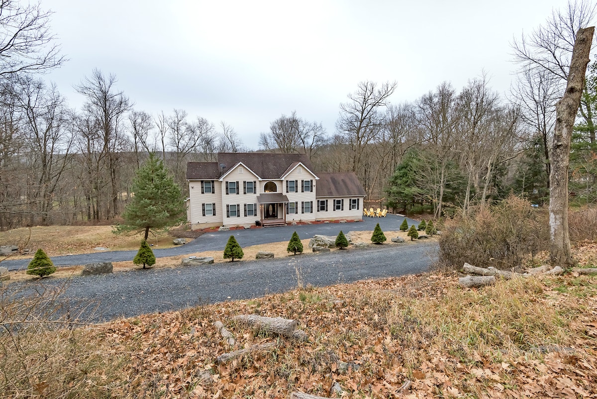 Kỳ nghỉ gia đình Pocono • Suối • Hồ bơi • Lò sưởi