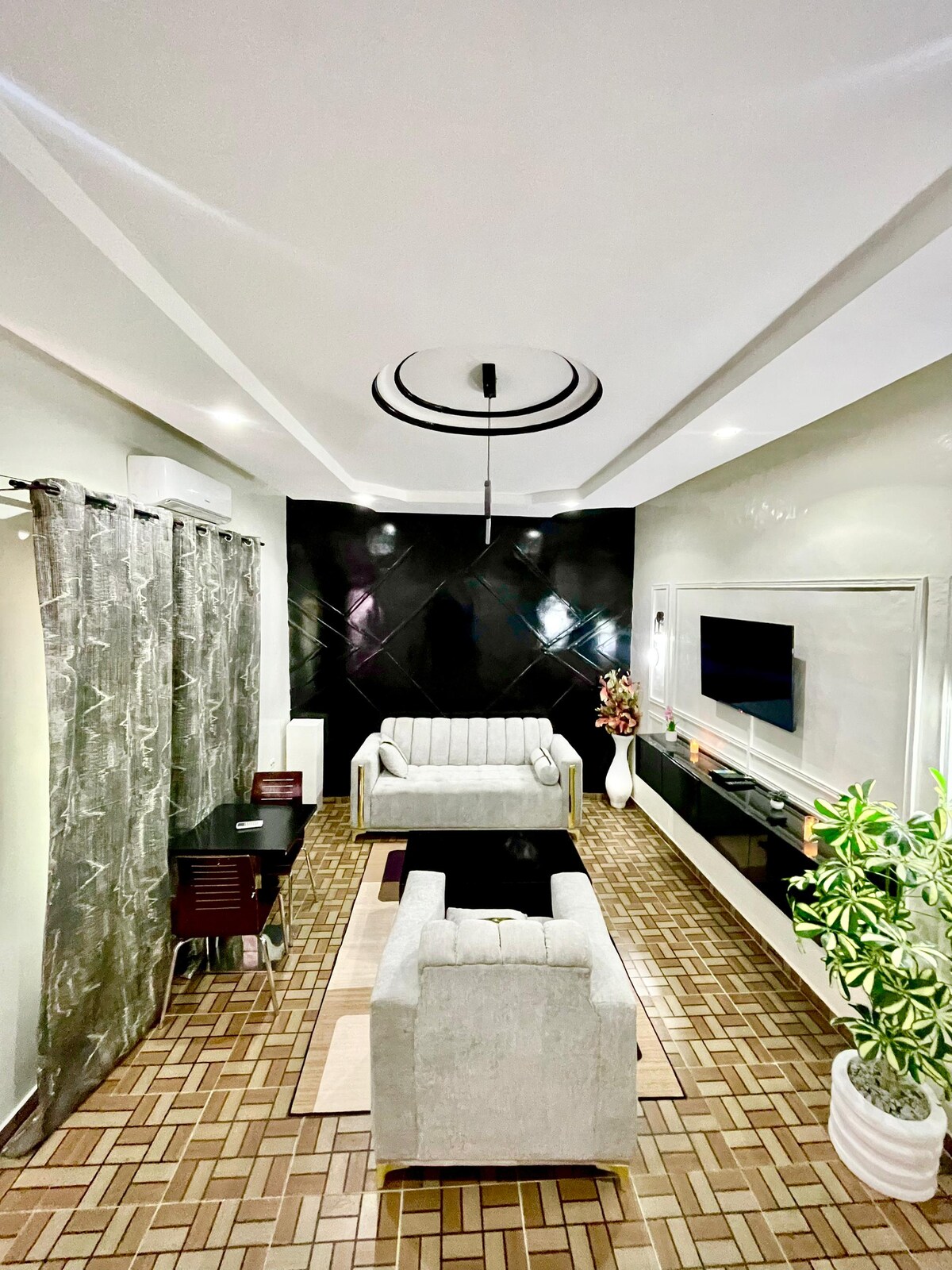 Chào mừng bạn đến với ngôi nhà thanh lịch của bạn ở Parakou. Căn hộ 1 phòng ngủ hiện đại này được thiết kế để mang lại sự thoải mái, riêng tư và thư giãn. Nằm trong một khu phố yên bình và an toàn, nơi đây lý tưởng cho khách đi công tác, cặp đôi hoặc cho thời gian lưu trú ngắn và dài. Tận hưởng điều hòa không khí, bếp đầy đủ tiện nghi và chỗ đỗ xe an toàn. Mọi thứ được sắp xếp để mang lại cho bạn thời gian ở suôn sẻ và không căng thẳng.
