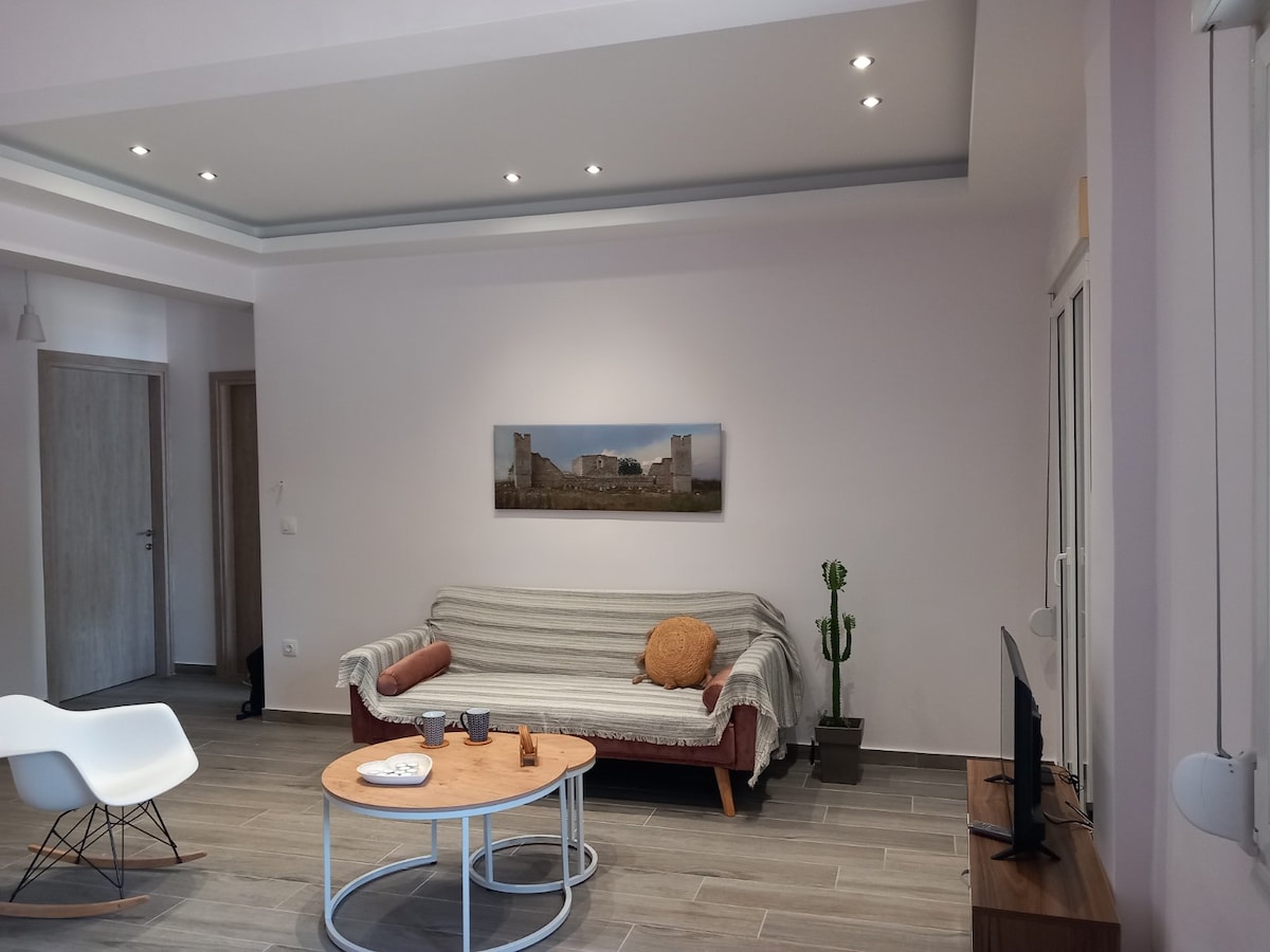 A cozy apartment just 2 minutes from the beach! A quiet destination near the sea to relax on the spring and autumn. Dreamy holidays for the summer! Just 6 minutes walk from the apartment ,there are 2 beach bars and a tavern to relax and enjoy your coffee,drinks or something to eat! The balcony view is amazing as you can admire the deep blue sea! Free parking available. The apartment is located in the area of Paliouras 30 km from Thessaloniki Also “Macedonia airport” is only 25 minutes away.