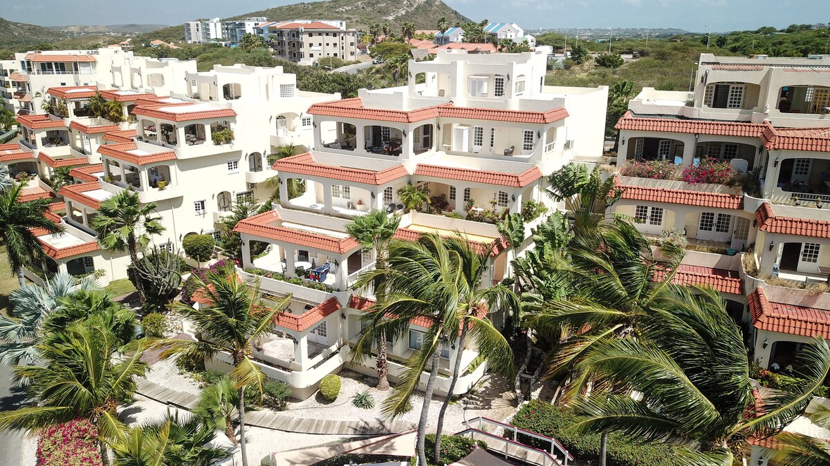 Luxury Condo at Piscadera Bay: 2 bedrooms, 2 bathrooms, Full A/C, a nice balcony with sea and garden views. Close to beaches, restaurants, and downtown, just 5 minutes away. Plus, there's a swimming pool, gym, rooftop yoga, mini golf, kids pool and playground, BBQ area, free parking and security. A classy layout and modern comforts make this place perfect for anyone who wants style by the sea. Our host team is ready to assist and accommodate you. :) Car Rental and Airport transport Available!