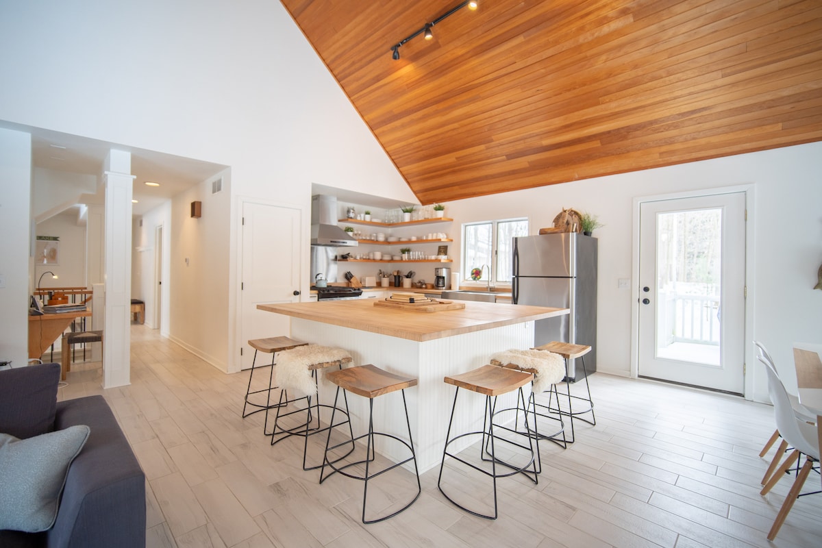Nhà nghỉ thôn dã ấm cúng nhưng rộng rãi của chúng tôi có mọi thứ cho một kỳ nghỉ thư giãn - rất nhiều khu vực riêng lẻ để nghỉ ngơi và vô số không gian thư giãn/chỗ ngồi cho các nhóm kết nối từ trong ra ngoài. Có các trò chơi cờ bàn, ba TV lớn với Netflix và truyền hình cáp, một lò sưởi, lò nướng, nhà bếp đầy đủ đồ, v.v. Các hoạt động ngoài trời gần đó: đi xe đạp leo núi, đi xe đạp đường bộ, chạy trên những con đường trải nhựa ngay trước nhà, đi bộ đường dài và hơn thế nữa!. Ngôi nhà này rộng 3k ft vuông (chúng tôi cho thuê một không gian rộng 4k ft vuông gần đó, "Haven Woods").