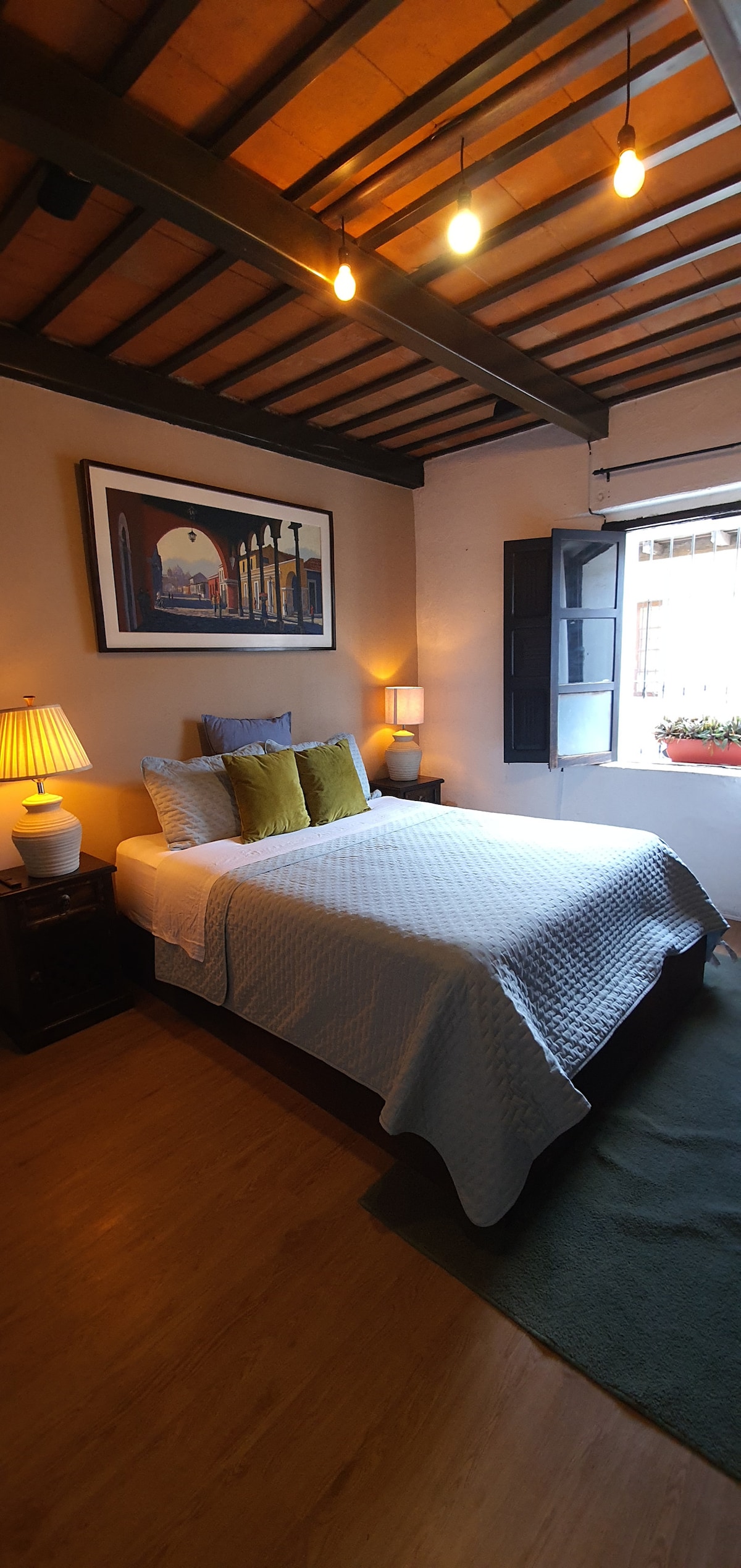 Chào mừng bạn đến với căn hộ sang trọng của chúng tôi, được trang trí bằng các tác phẩm cổ và tác phẩm nghệ thuật được lựa chọn đặc biệt để tạo ra một bầu không khí độc đáo và thanh lịch. Nằm ở một vị trí tuyệt vời ở Antigua Guatemala, trong một quảng trường quyến rũ với một cửa hàng đồ cổ và một quán cà phê cổ kính ngay bên ngoài. Phòng riêng yên tĩnh này hoàn hảo cho những ai đang tìm kiếm một kỳ nghỉ độc quyền và tinh tế. Tận hưởng sự thoải mái và vẻ đẹp của căn hộ của chúng tôi trong khi đắm mình trong sự quyến rũ của môi trường xung quanh.