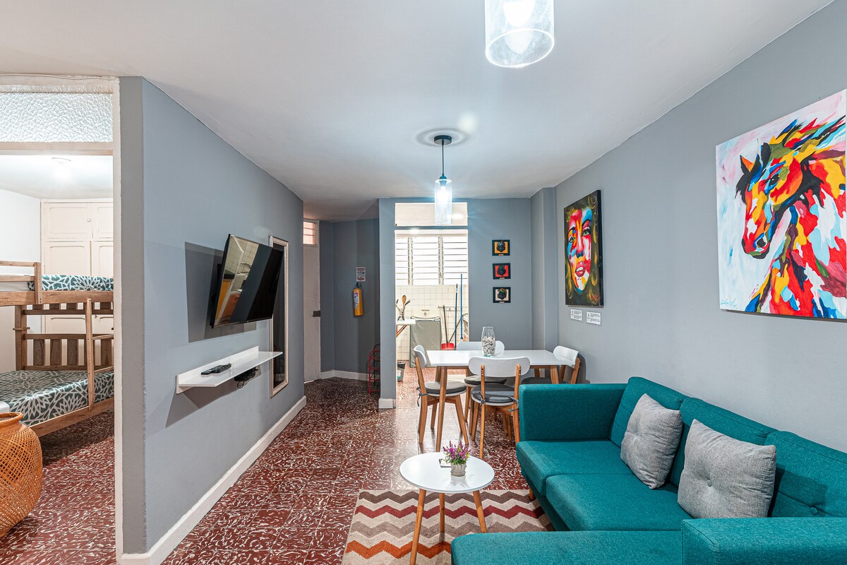Apartamento cómodo y luminoso ubicado en un edificio residencial antiguo del Centro Histórico de Santa Marta. Cuenta con cocina equipada, aire acondicionado, baño privado, WiFi y TV con streaming. Su ubicación es ideal: a 3 minutos caminando del supermercado Éxito y a 5 minutos del Parque de los Novios y el Callejón del Correo, zona de restaurantes, bares y vida nocturna, con fácil acceso a vías principales. Un espacio perfecto para conocer el centro histórico.